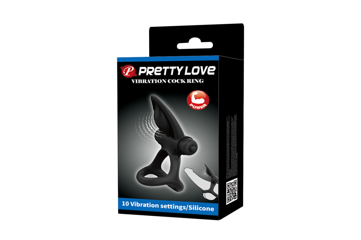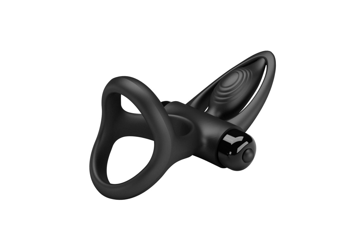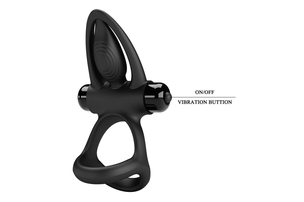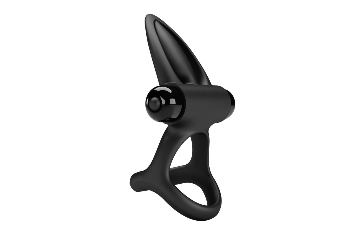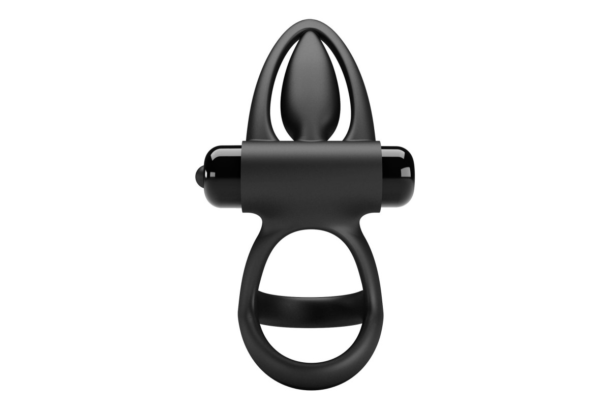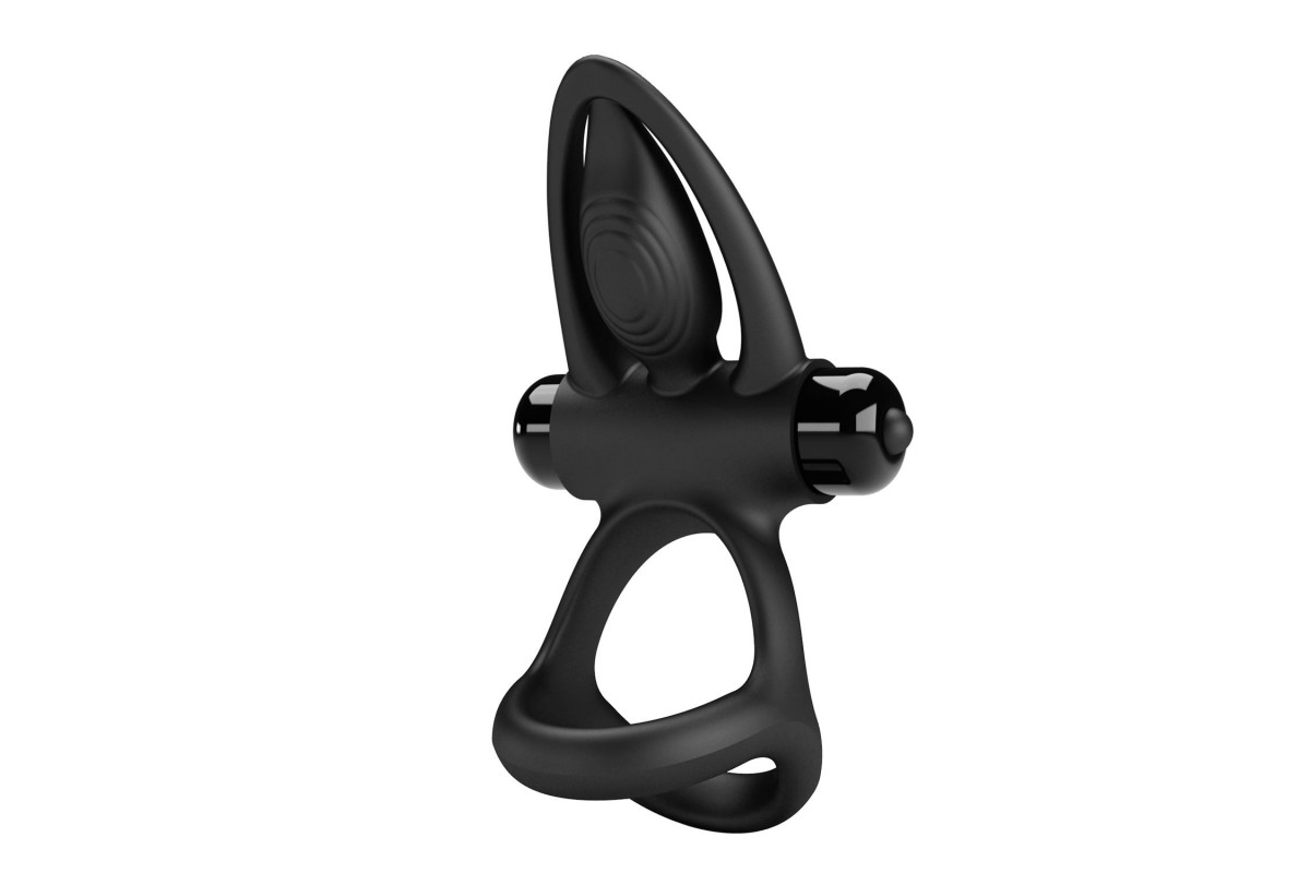 Черное эрекционное кольцо с 10 режимами вибрации и подхватом мошонки