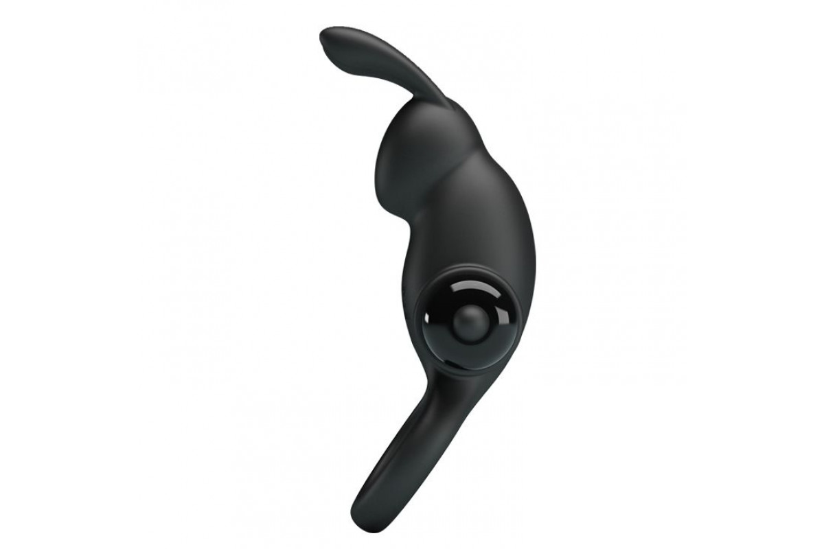 Черное эрекционное кольцо с выступом-зайчиком для стимуляции клитора