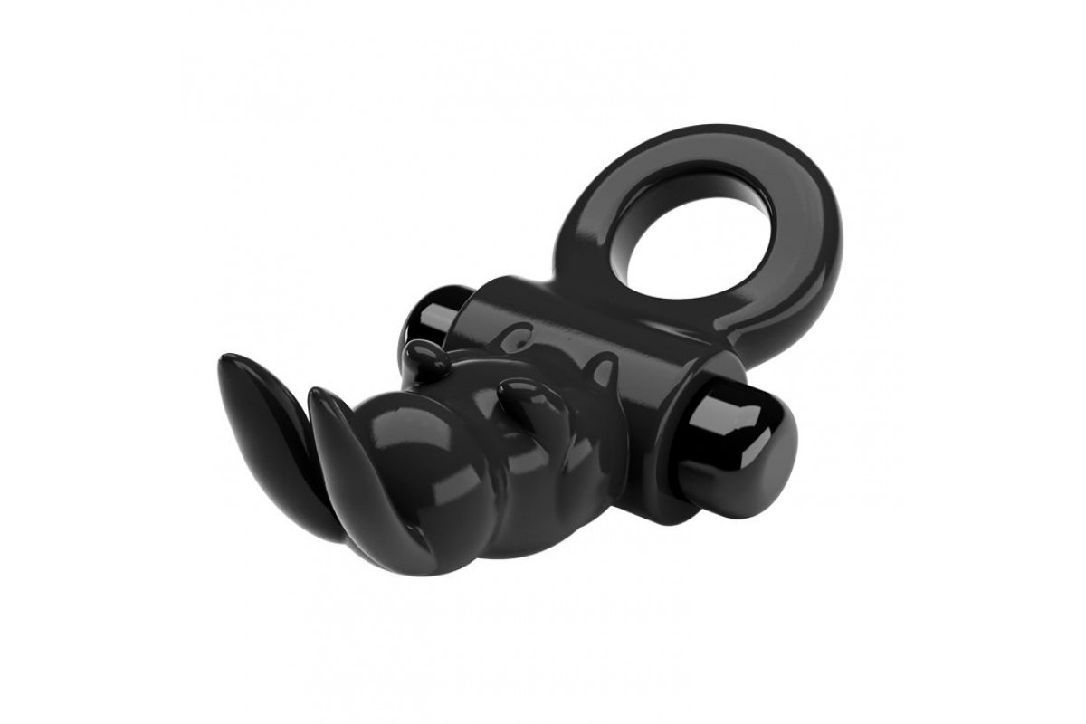 Черное эрекционное кольцо со стимулятором клитора в виде кролика Exciting ring