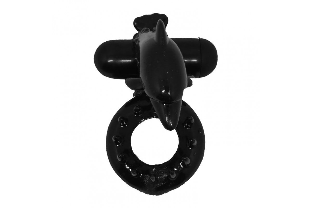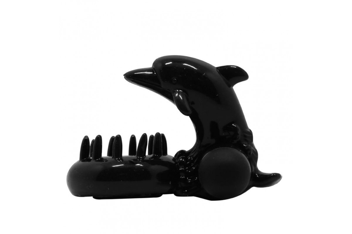 Чёрное эрекционное виброкольцо Sweet Ring с дельфинчиком