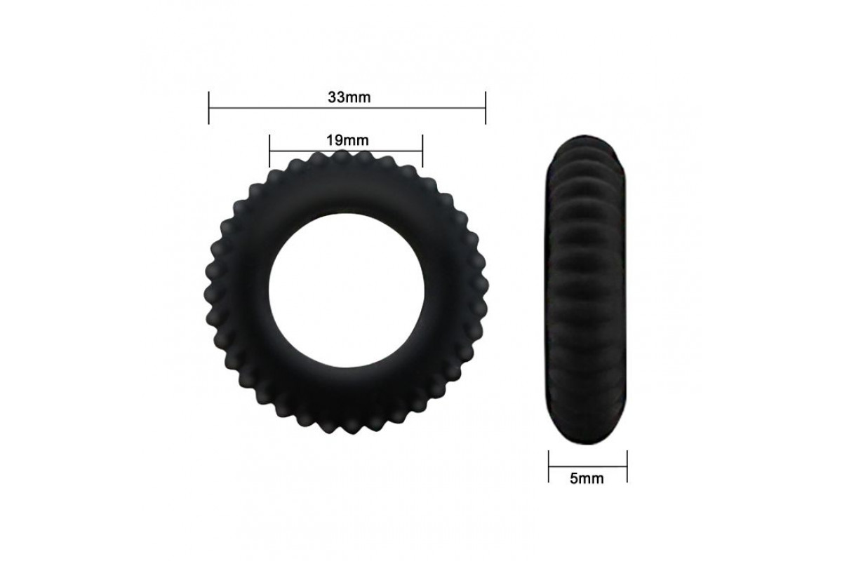 Эрекционное кольцо выполнено из прочных и гипоаллергенных материалов, что обеспечивает безопасность и долговечность использования. Его черный цвет и ребристая поверхность создают привлекательный внешний вид и стимулируют чувствительные зоны.