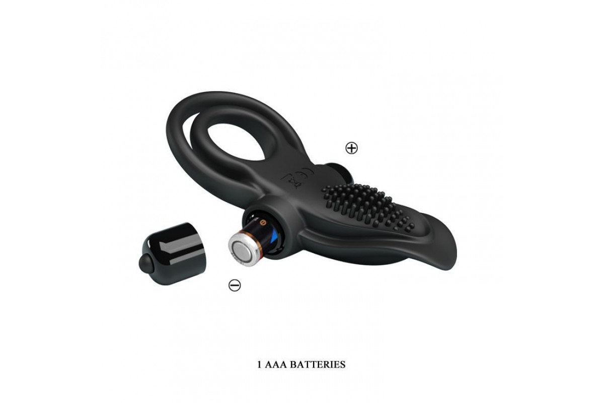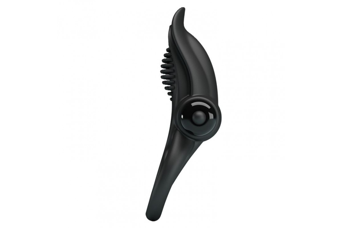 Черное силиконовое эрекционное кольцо с вибрацией и подхватом мошонки