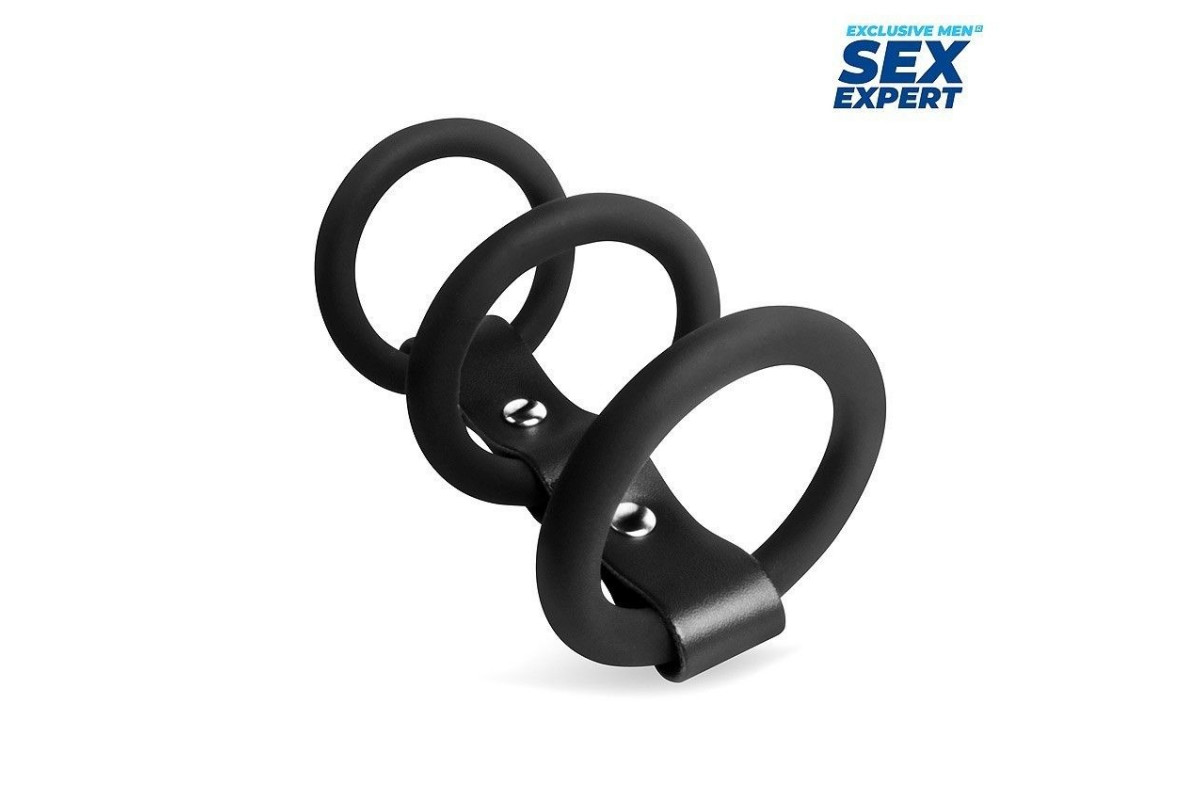 Черное тройное эрекционное кольцо с ремешком — усилите ваши ощущения