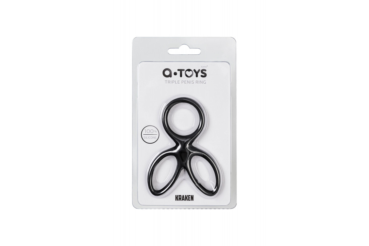 Черное тройное кольцо на пенис Kraken — усиление ощущений и стильный дизайн