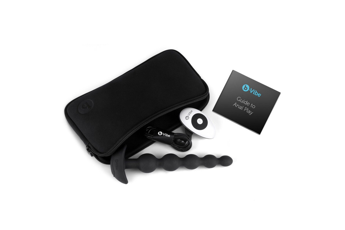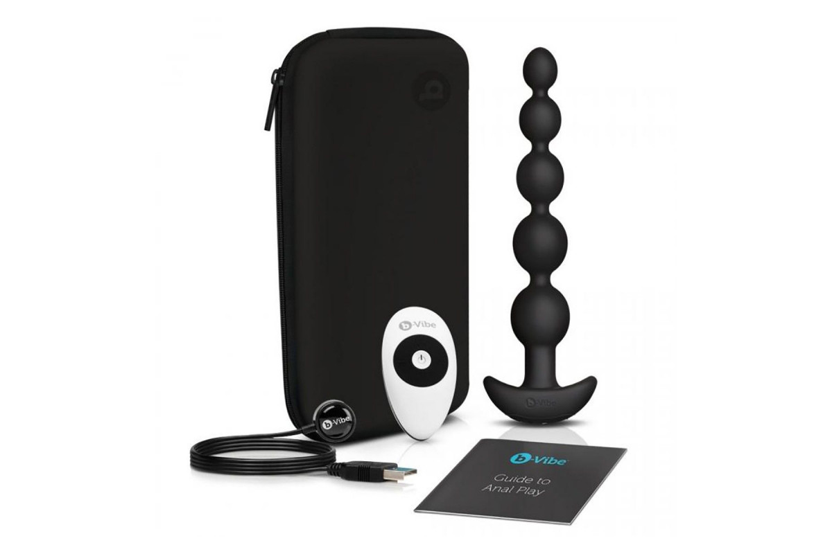 Черные анальные бусы с 3 моторами B-Vibe Cinco Anal Beads - 20,5 см.