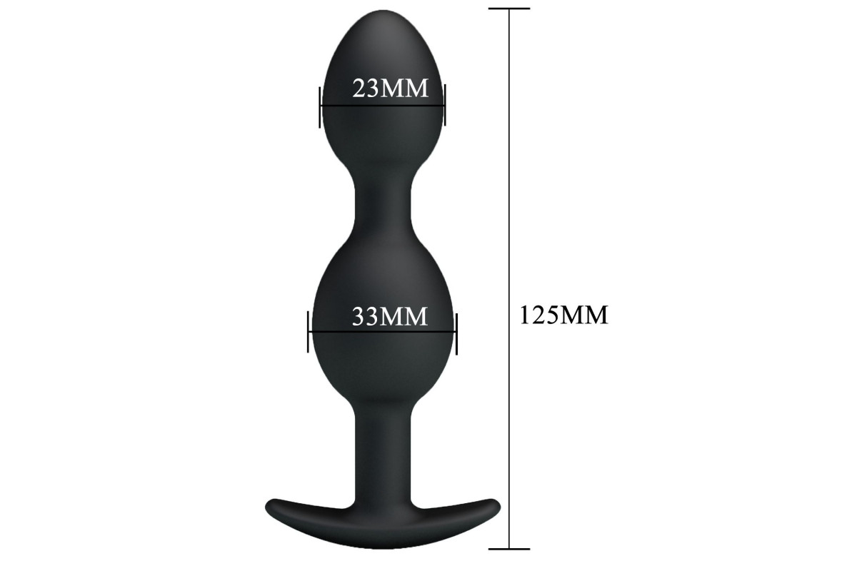 Чёрные анальные шарики из силикона - невероятно приятные на ощупь. Два расширения в виде шариков различного диаметра. В процессе движения стимулятор будет дополнительно массажировать внутренние стенки. Это происходит, так в игрушке реализован принцип смещенного центра тяжести, как в вагинальных шариках. Внутри расположен шарик меньшего диаметра, который при движении ударяется о стенки игрушки, тем самым вызывая механическую вибрацию, очень легкую, но тем не менее дополнительно стимулирующую во время стимуляции. Диаметр меньшего шарика - 2,3 см.