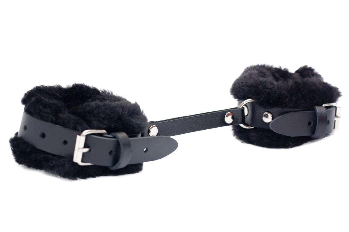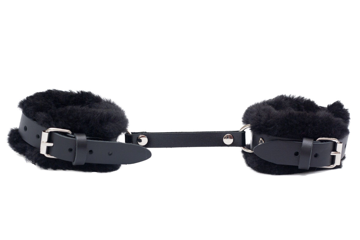 Черные базовые наручники из кожи с опушкой — стильное и надежное решение для ваших приключений