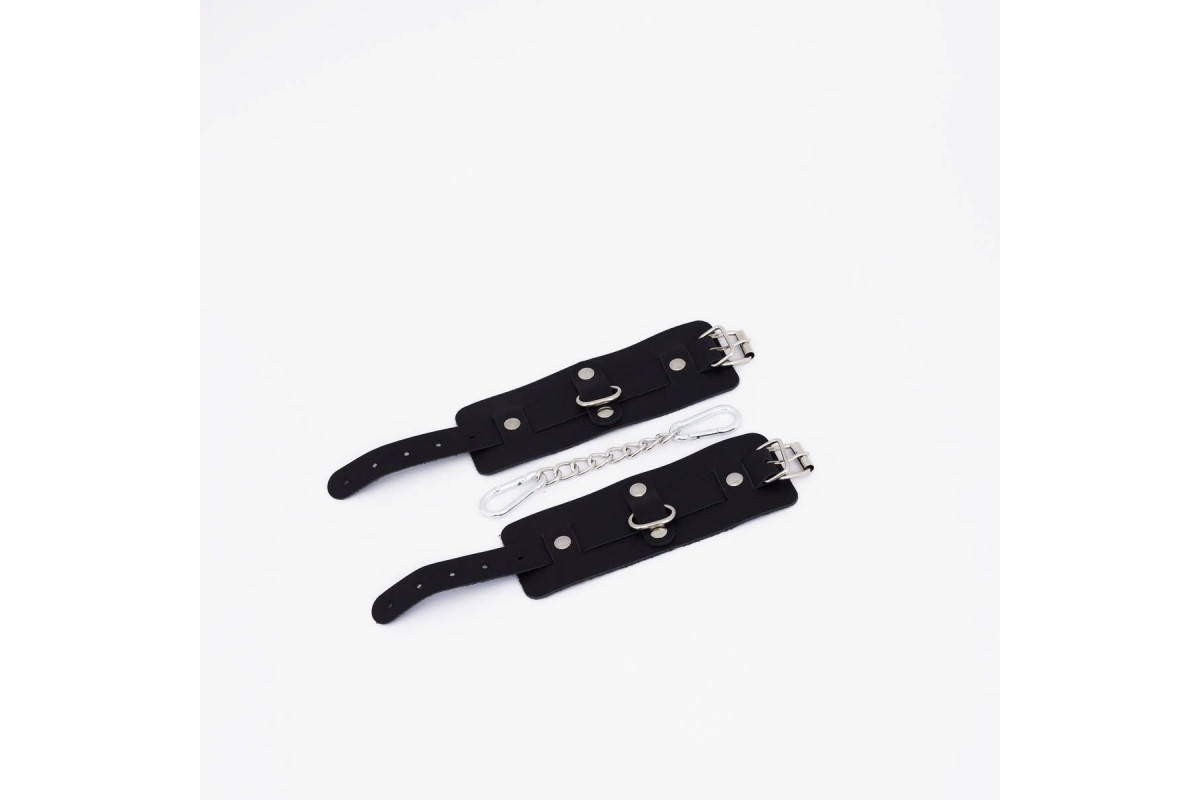 Черные кожаные наручники с хромированной фурнитурой — стильное и элегантное решение для взрослых