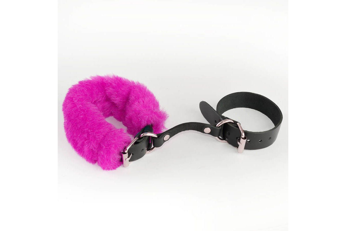 Черные кожаные наручники со съемной ярко-розовой опушкой — это не только функциональный аксессуар, но и стильный элемент, который подчеркнет вашу индивидуальность и добавит остроты в ваши отношения.