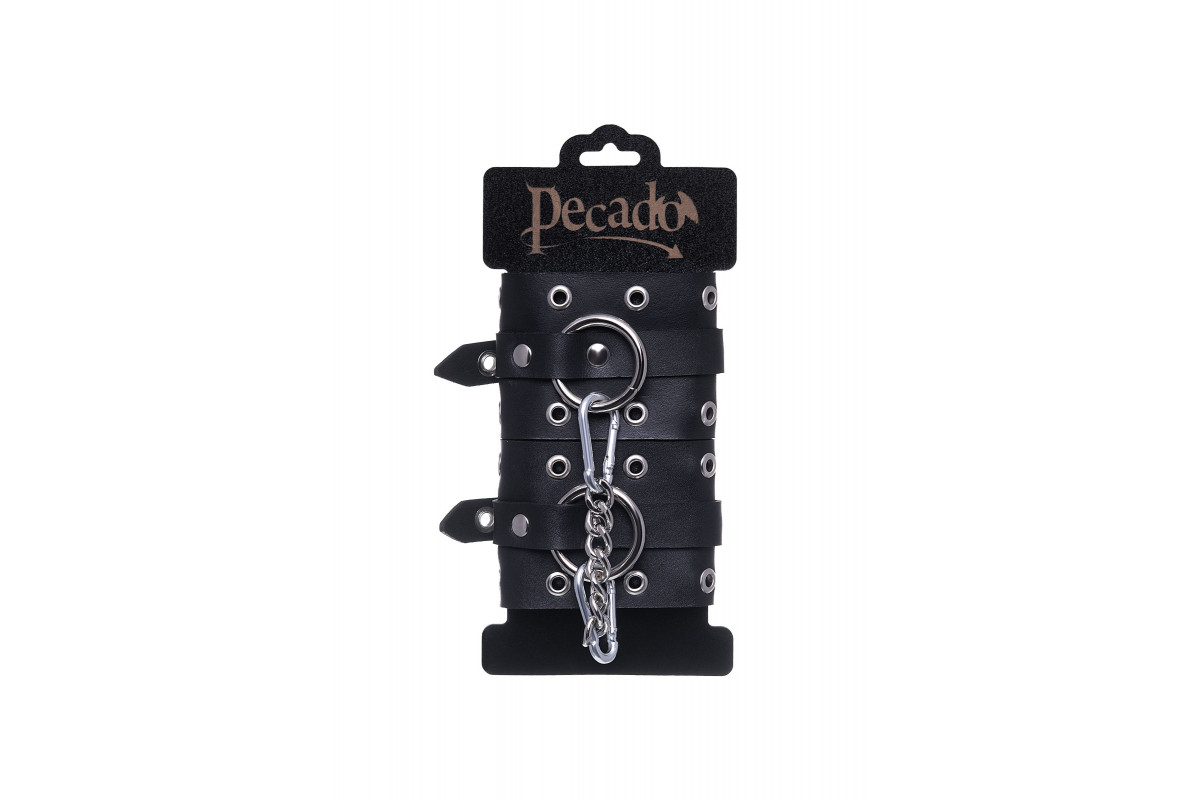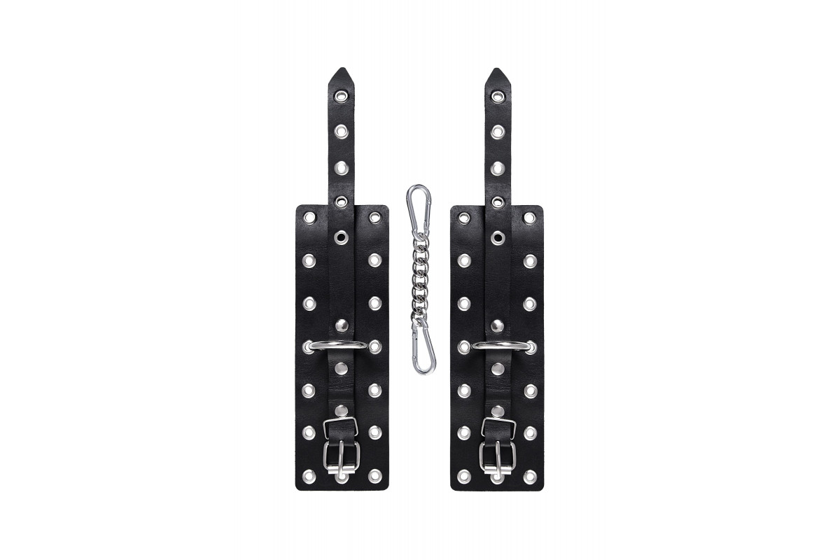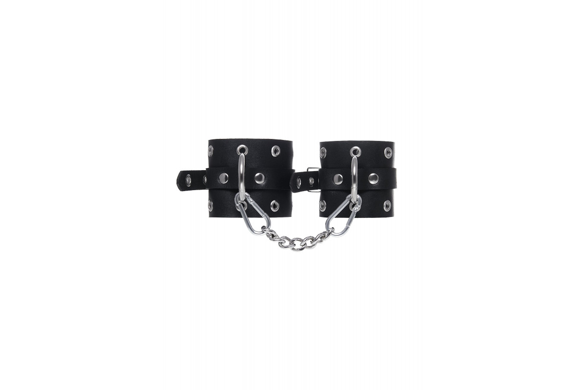 Наличие двух колец и карабинов, соединенных между собой металлической цепочкой, позволяет использовать изделие как раздельно – аксессуар-манжеты, так и как наручники для фиксации. К широким металлическим кольцам также можно присоединить и другие аксессуары при помощи карабинов.