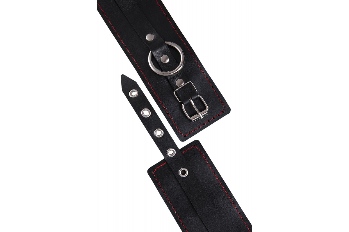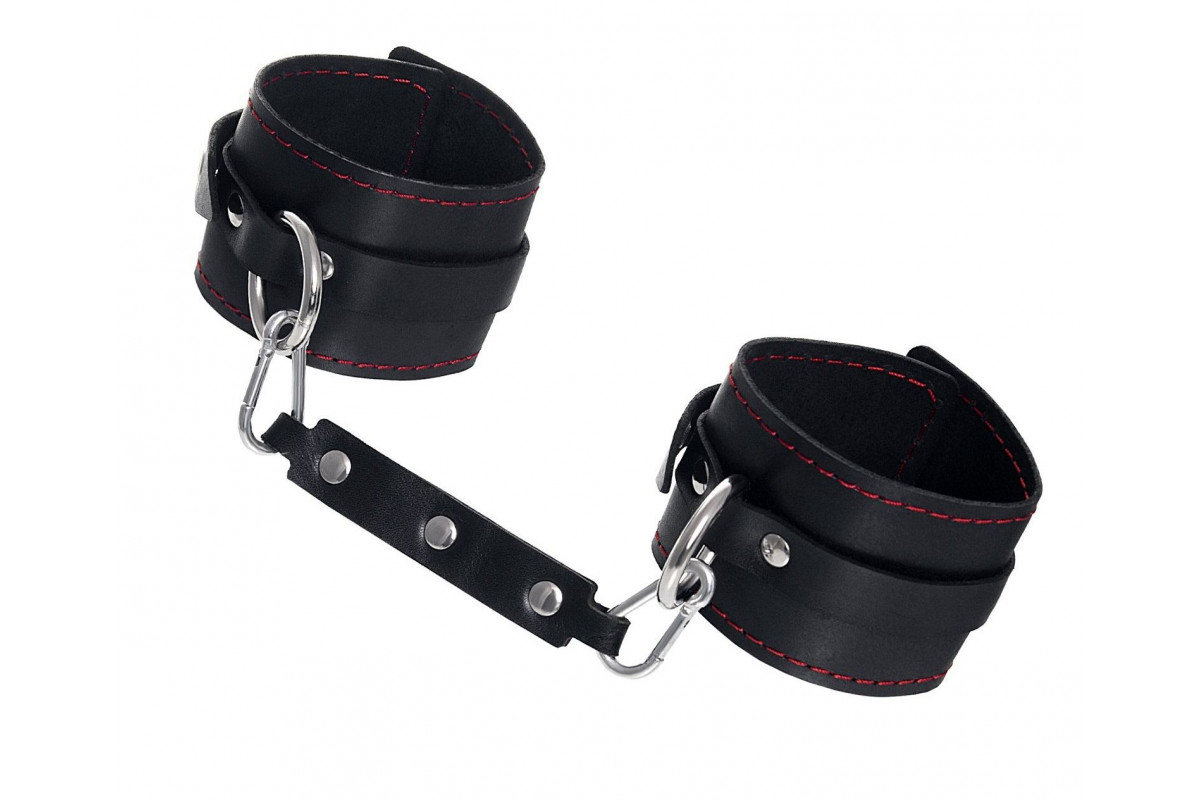 Черные кожаные однослойные оковы с контрастной строчкой — добавьте яркости и стиля в ваши интимные игры