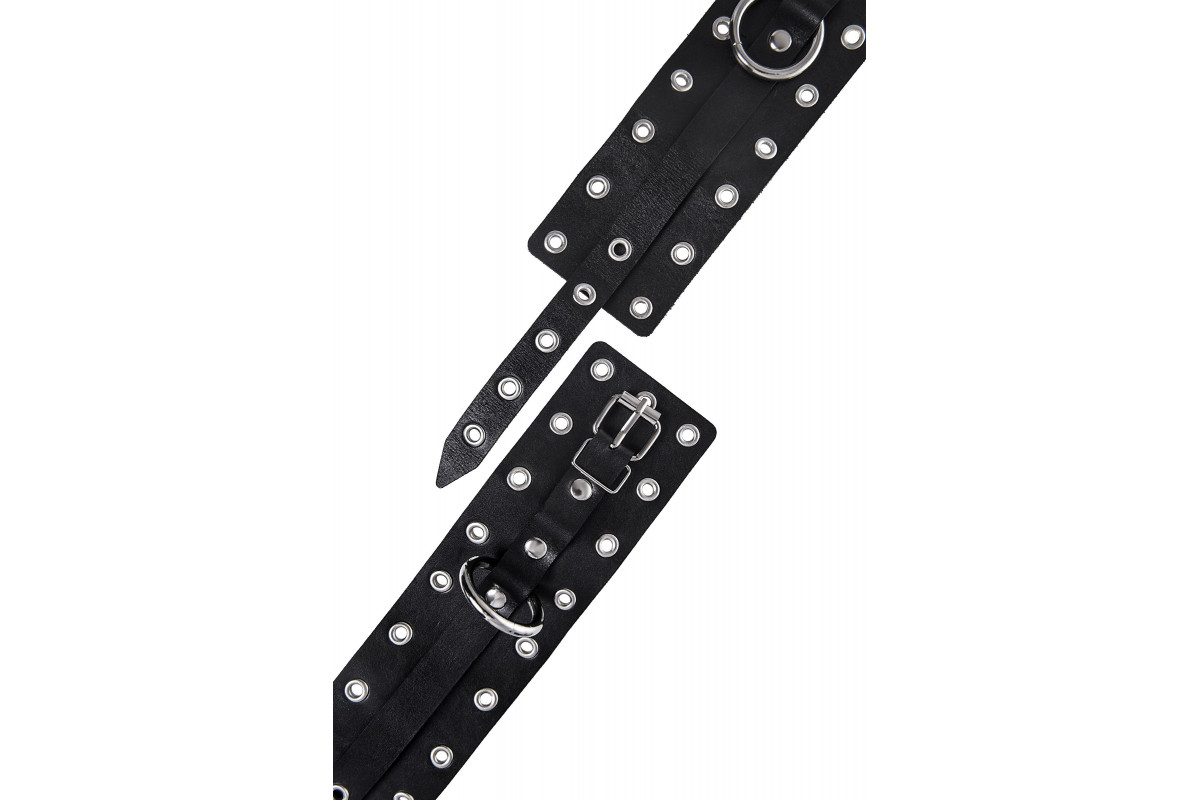 Черные кожаные однослойные оковы с люверсами — идеальный аксессуар для взрослых