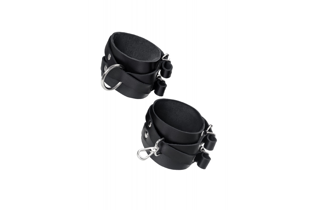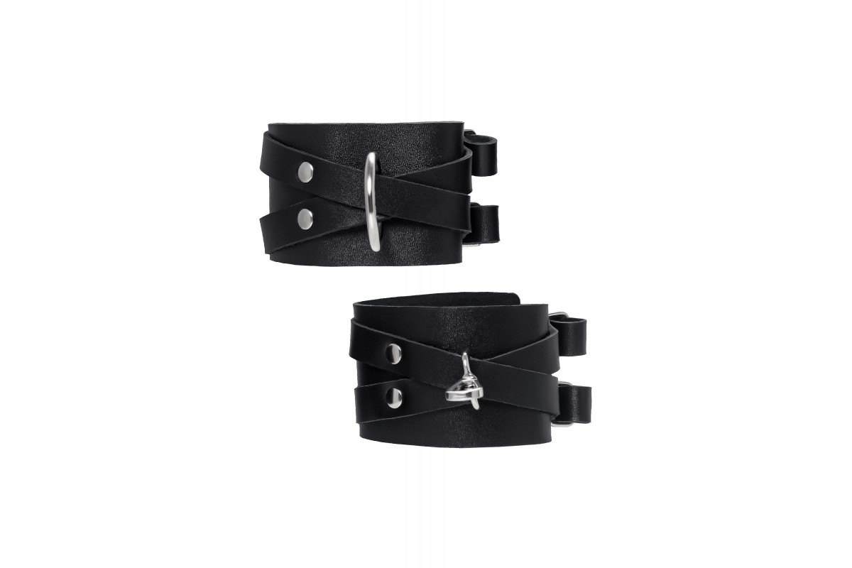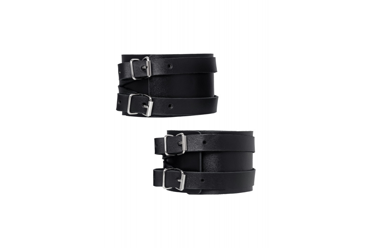 Обогатите свою коллекцию интимных аксессуаров и откройте новые горизонты наслаждения с нашими черными кожаными оковами с двумя перекрёстными ремешками. Сделайте каждый момент незабываемым!