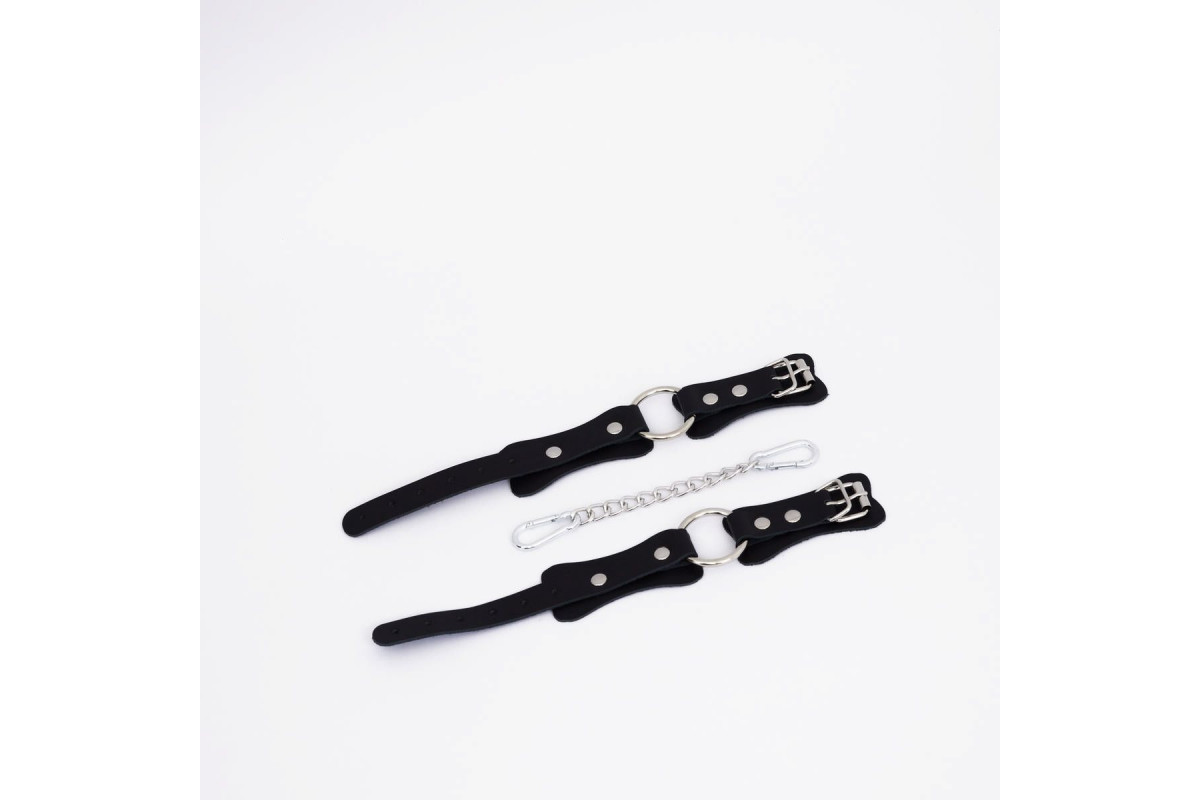 Изделие состоит из двух ремешков из натуральной кожи , соединенных посередине. Их лаконичный дизайн позволяет использовать их не только для фиксации рук или ног в любовных играх, но и как модный аксессуар, который украсит ваш повседневный или вечерний образ. В комплект входит стальное кольцо и соединительный элемент в виде прочной цепочки с двумя надежными карабинами , которые обеспечивают стабильность и контроль.