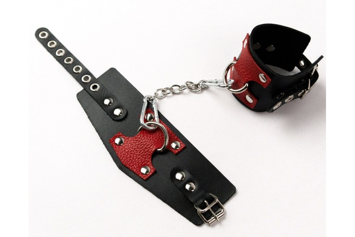 Черные кожаные оковы с красными вставками