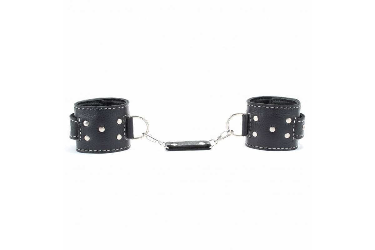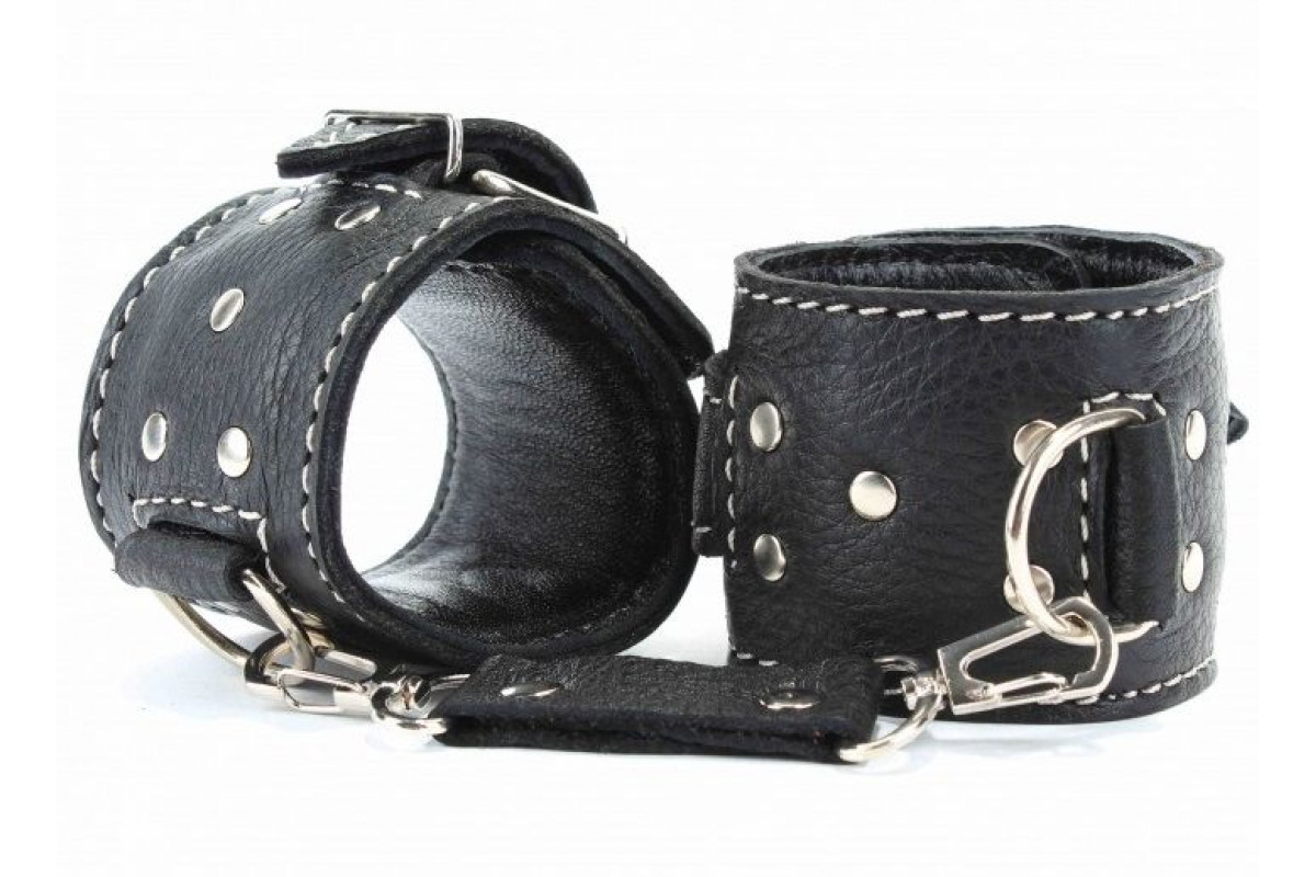 Чёрные кожаные оковы с крупной строчкой — усилите свои ощущения