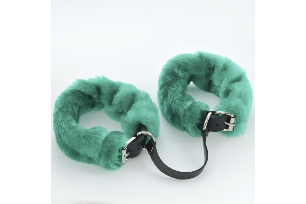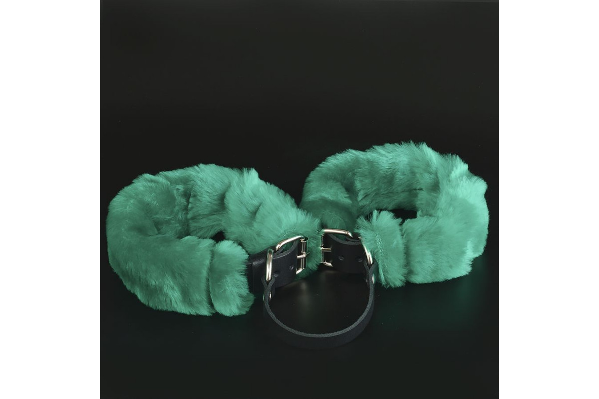 Черные кожаные оковы со съемной зеленой опушкой – стильное и функциональное решение для взрослых