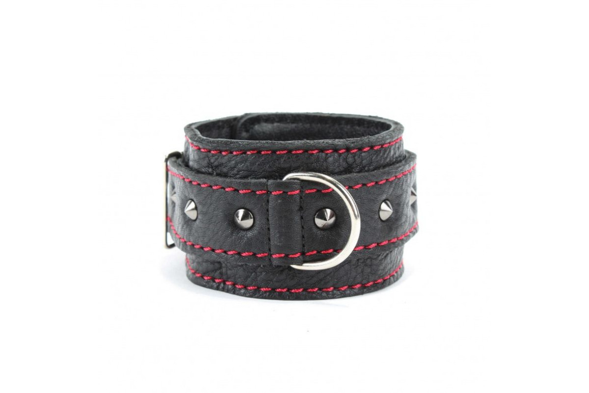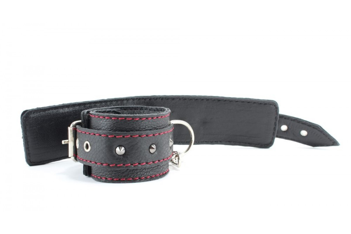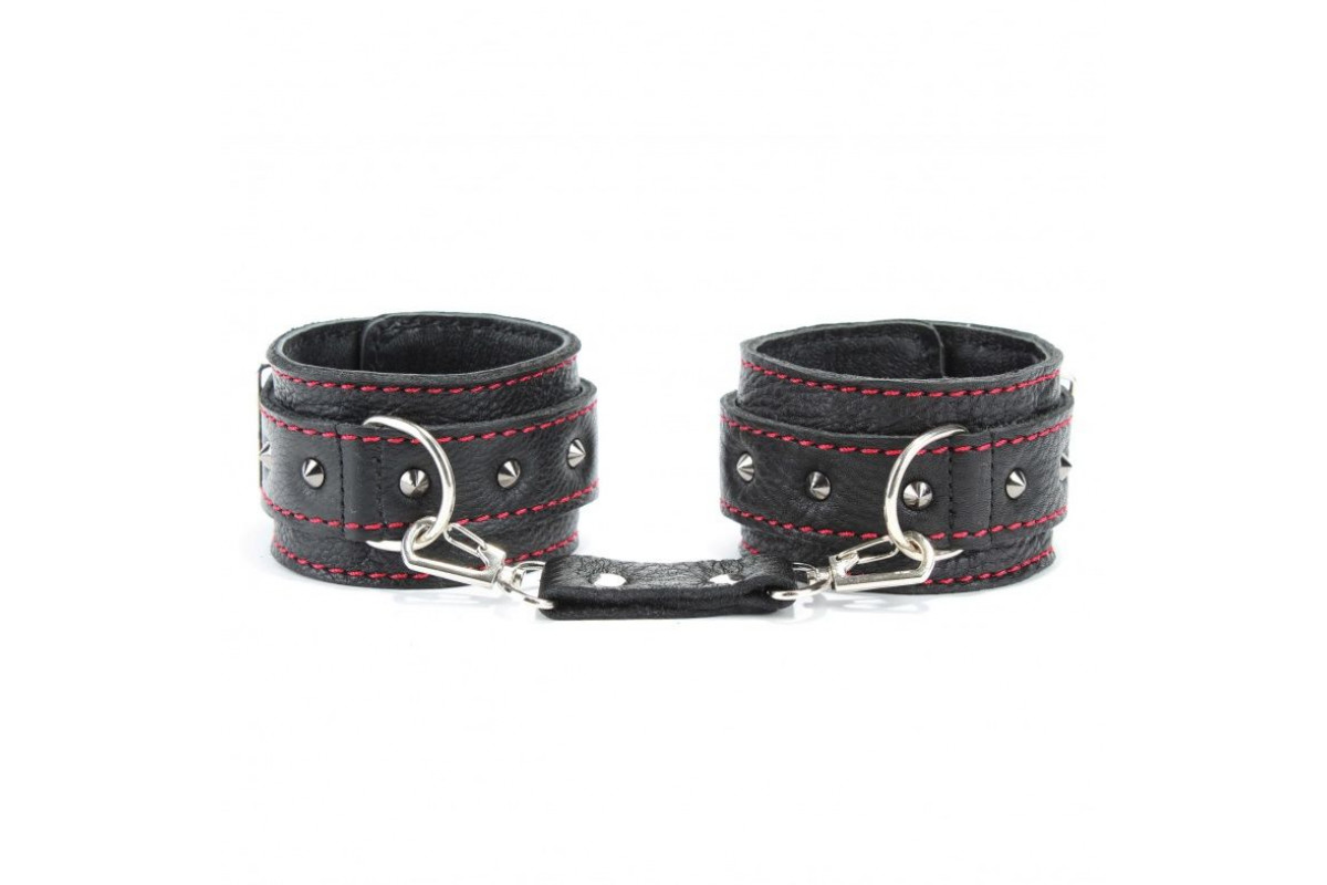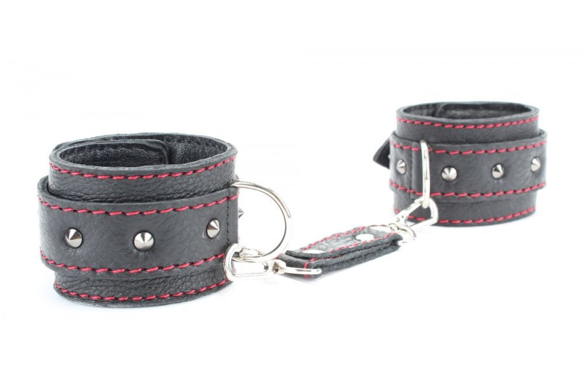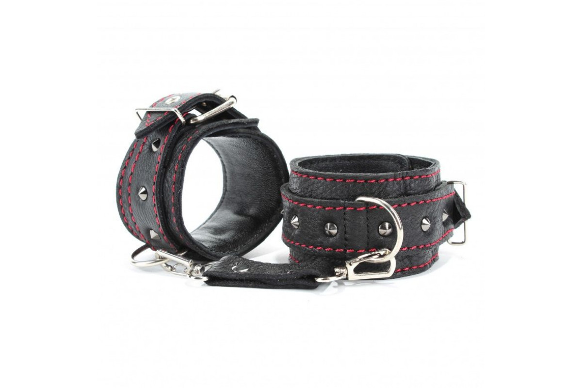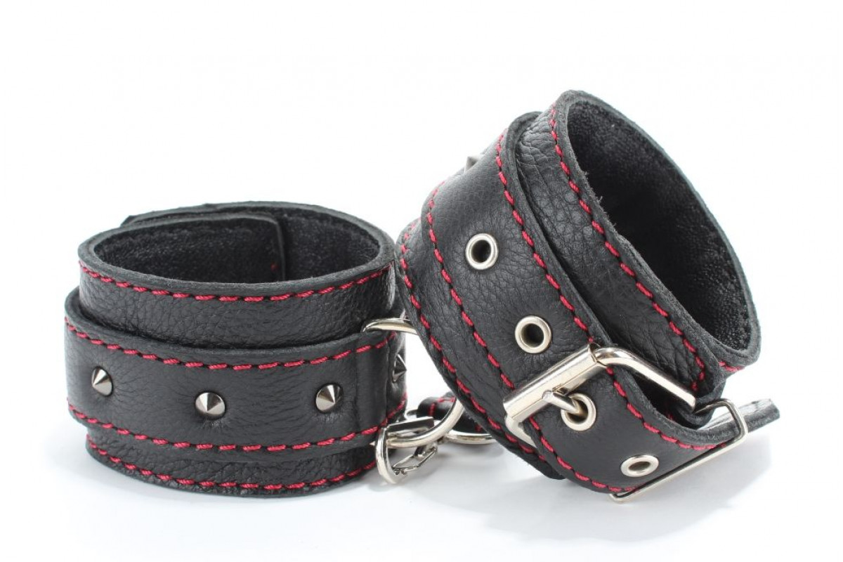 Черные наручники из натуральной кожи с контрастной строчкой — добавьте остроты в ваши интимные игры
