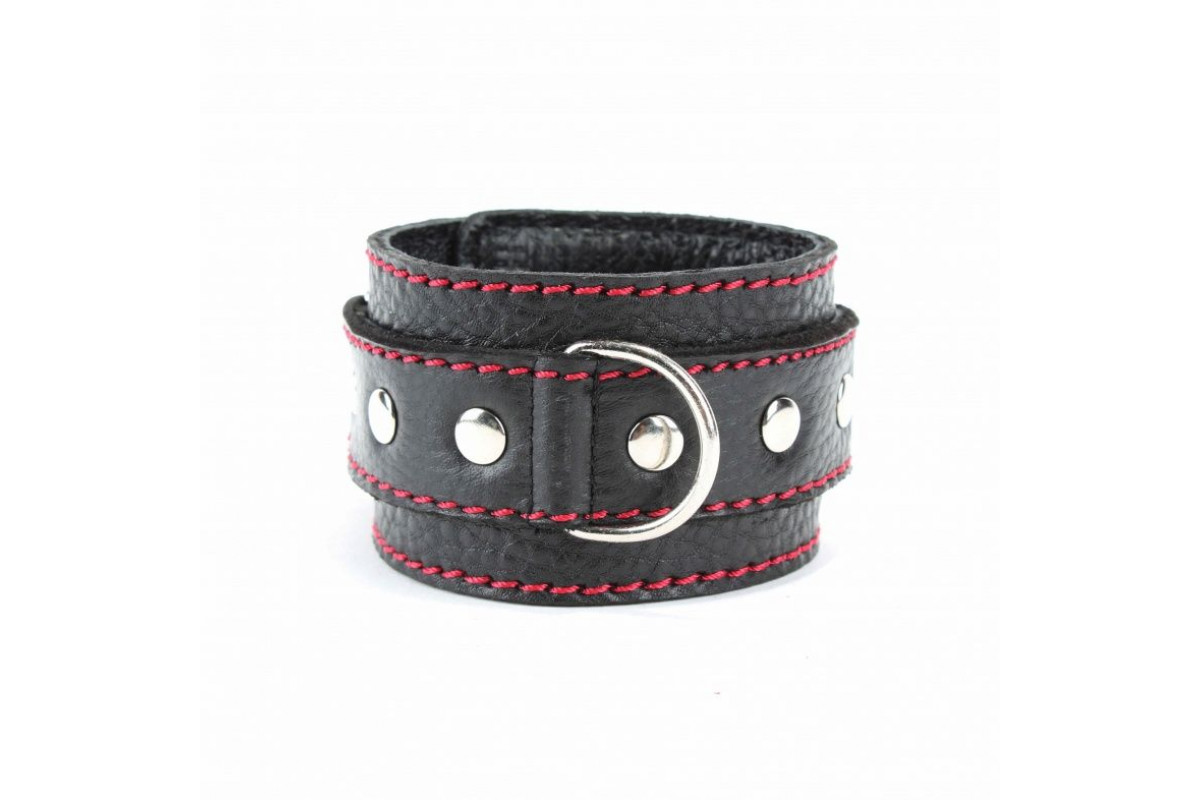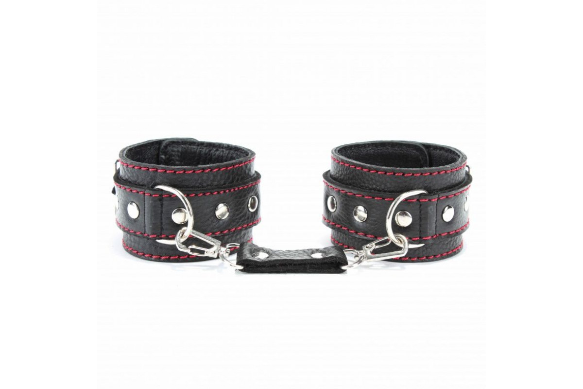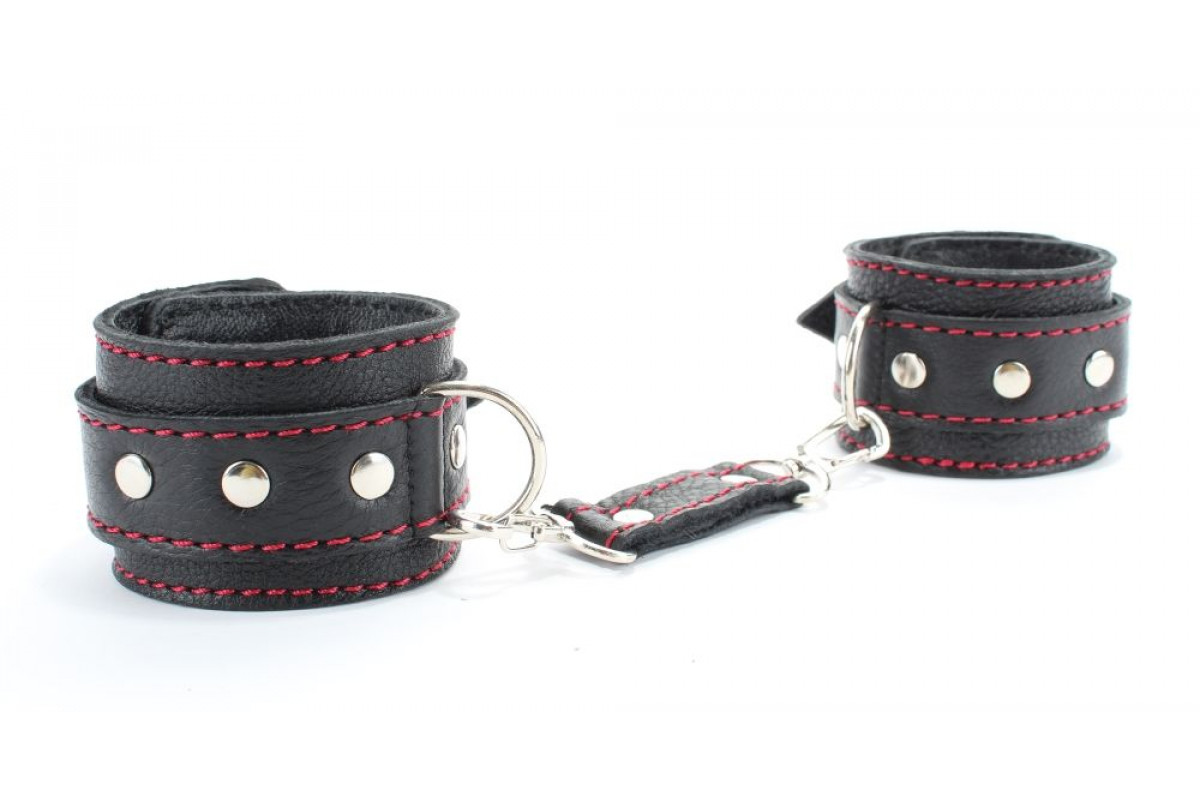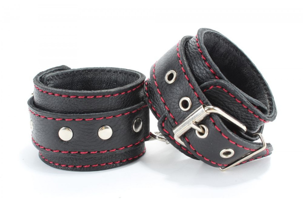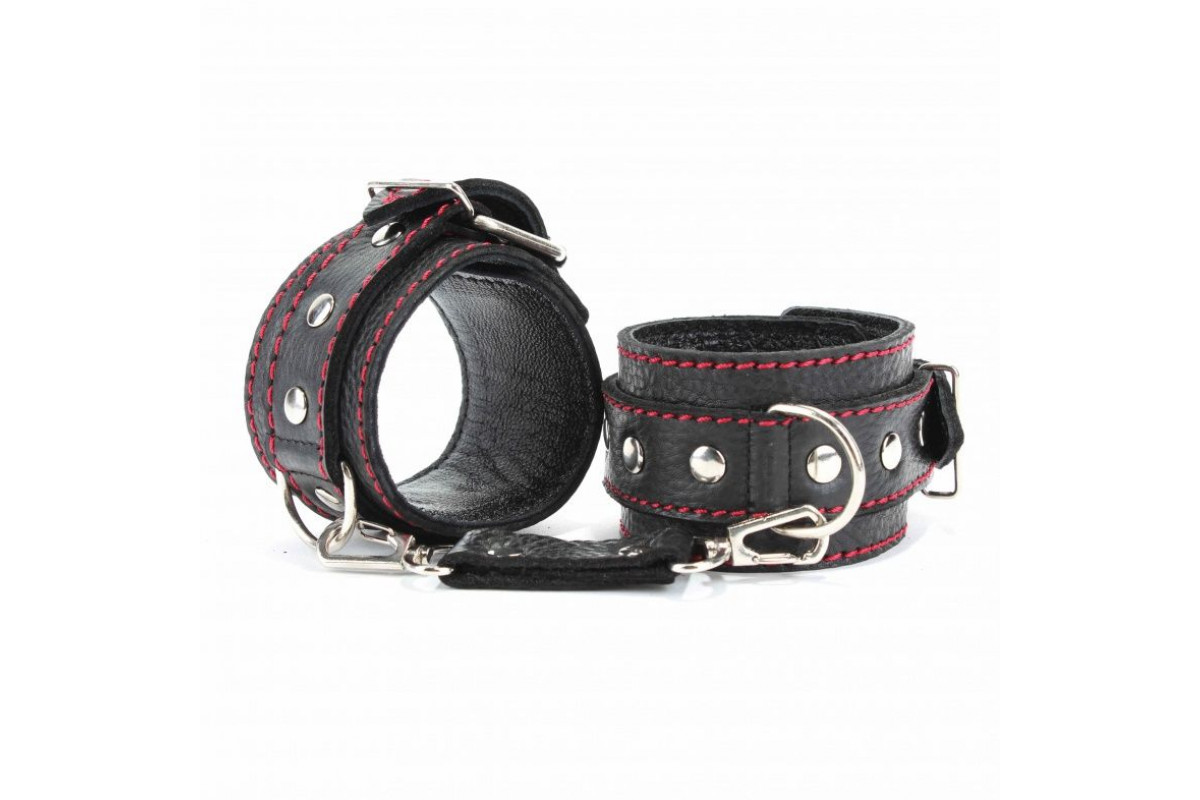 Черные наручники из натуральной кожи с красной строчкой — добавьте страсти и элегантности в ваши интимные игры