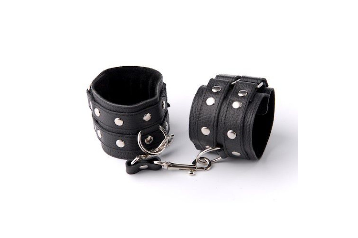 Чёрные наручники с клёпками — стильный аксессуар для взрослых игр