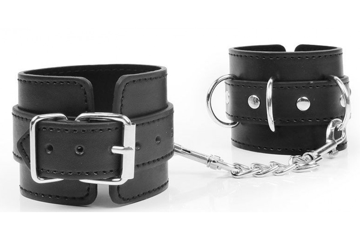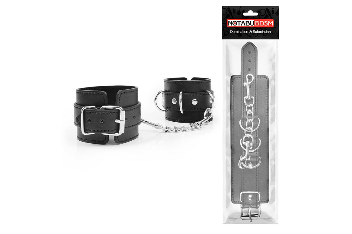 Черные наручники с металлическими застежками и цепочкой — добавьте остроты в ваши интимные игры