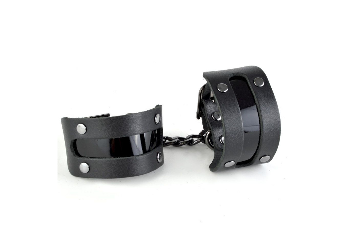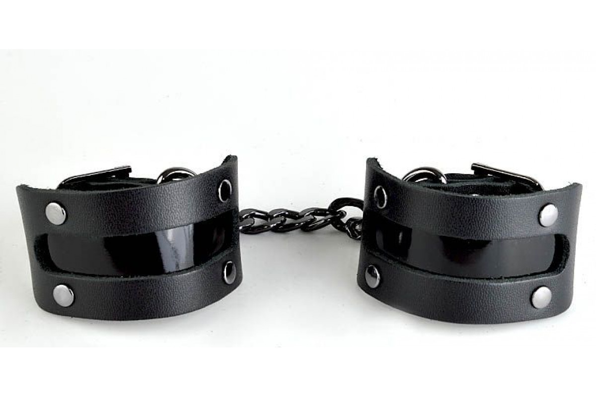 Чёрные наручники с вставкой «Пятница» – добавьте страсти и яркости в ваши интимные игры