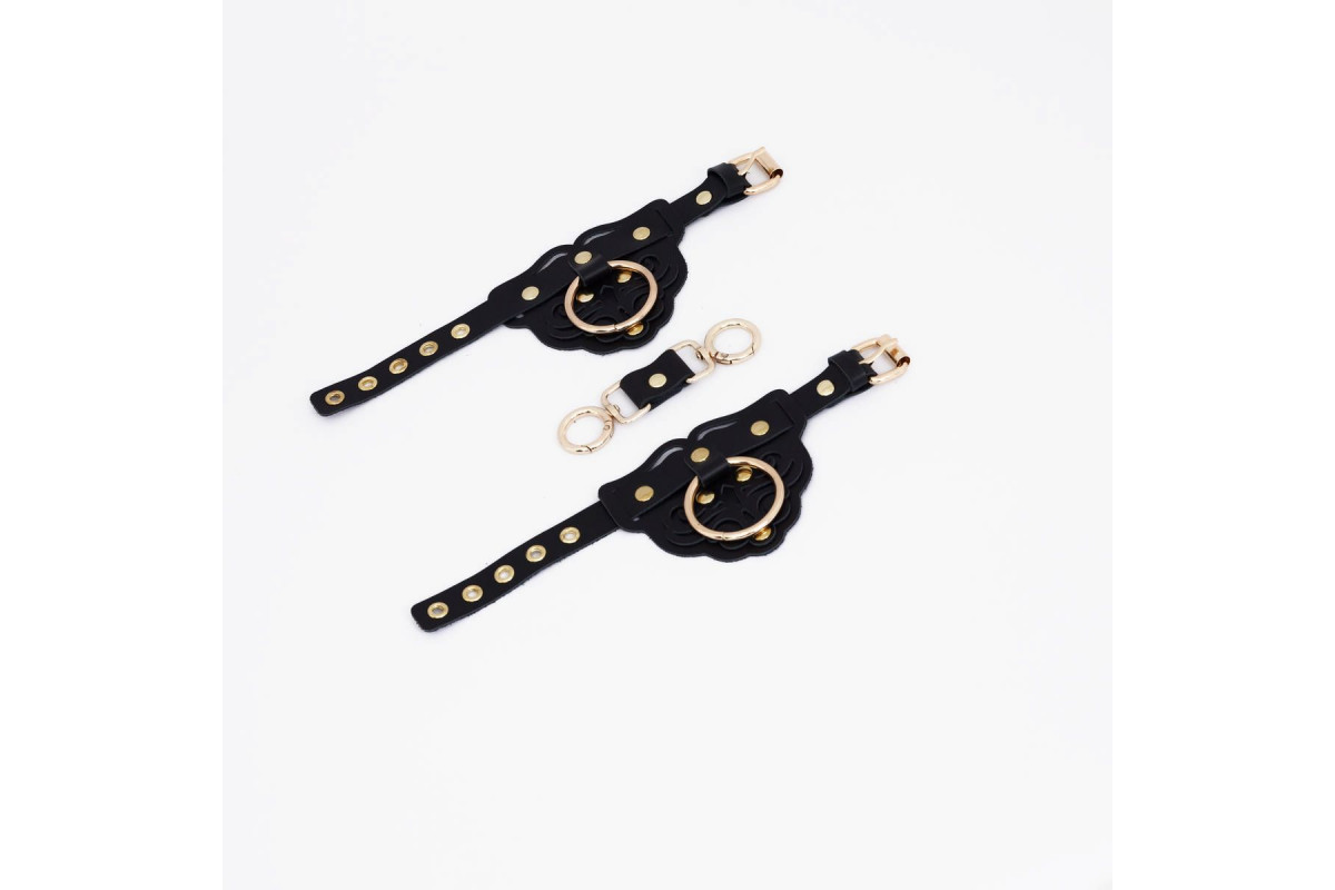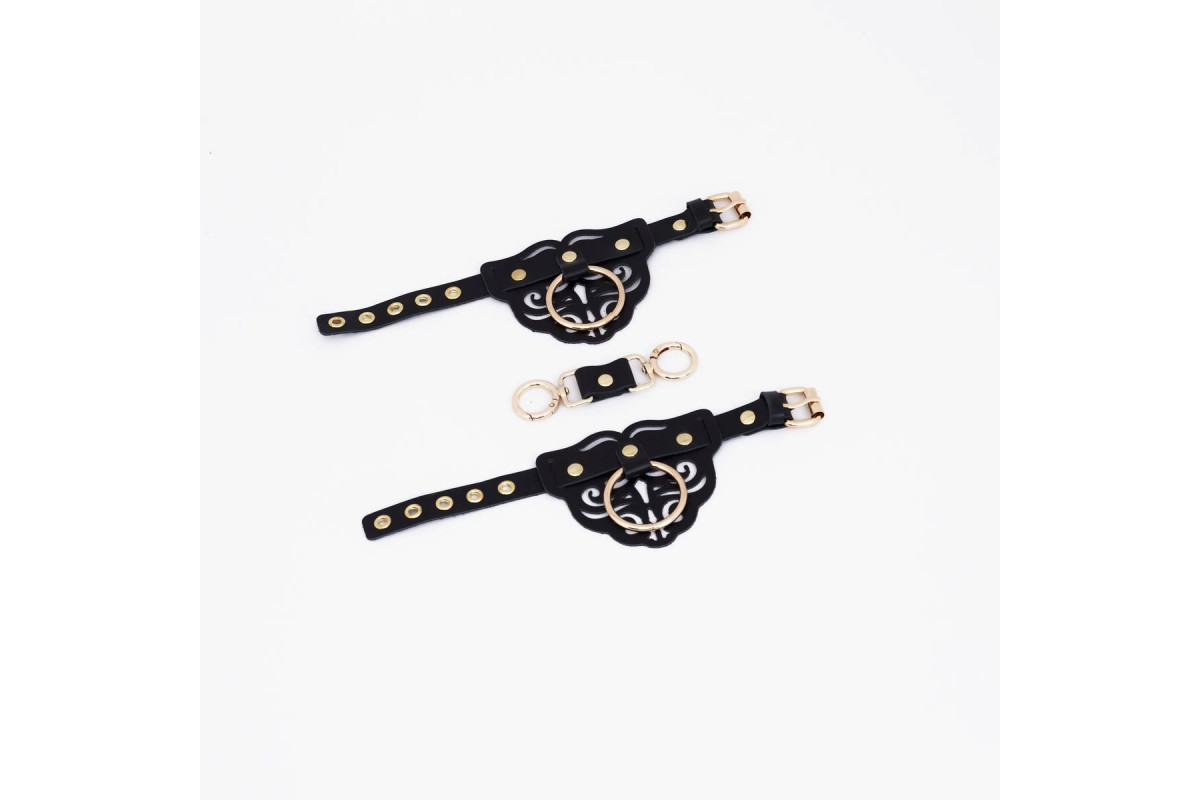Изготовленные из высококачественных материалов, эти наручники отличаются долговечностью и приятной на ощупь текстурой. Черный цвет в сочетании с золотистой фурнитурой придает аксессуару особый шарм и изысканность, делая его подходящим для романтических вечеров и экспериментов.