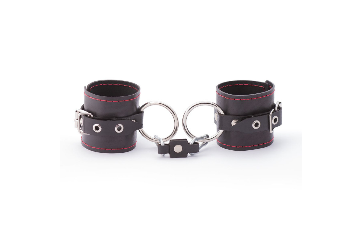 Черные однослойные кожаные наручники с контрастной строчкой — стильное и надежное дополнение для взрослых игр