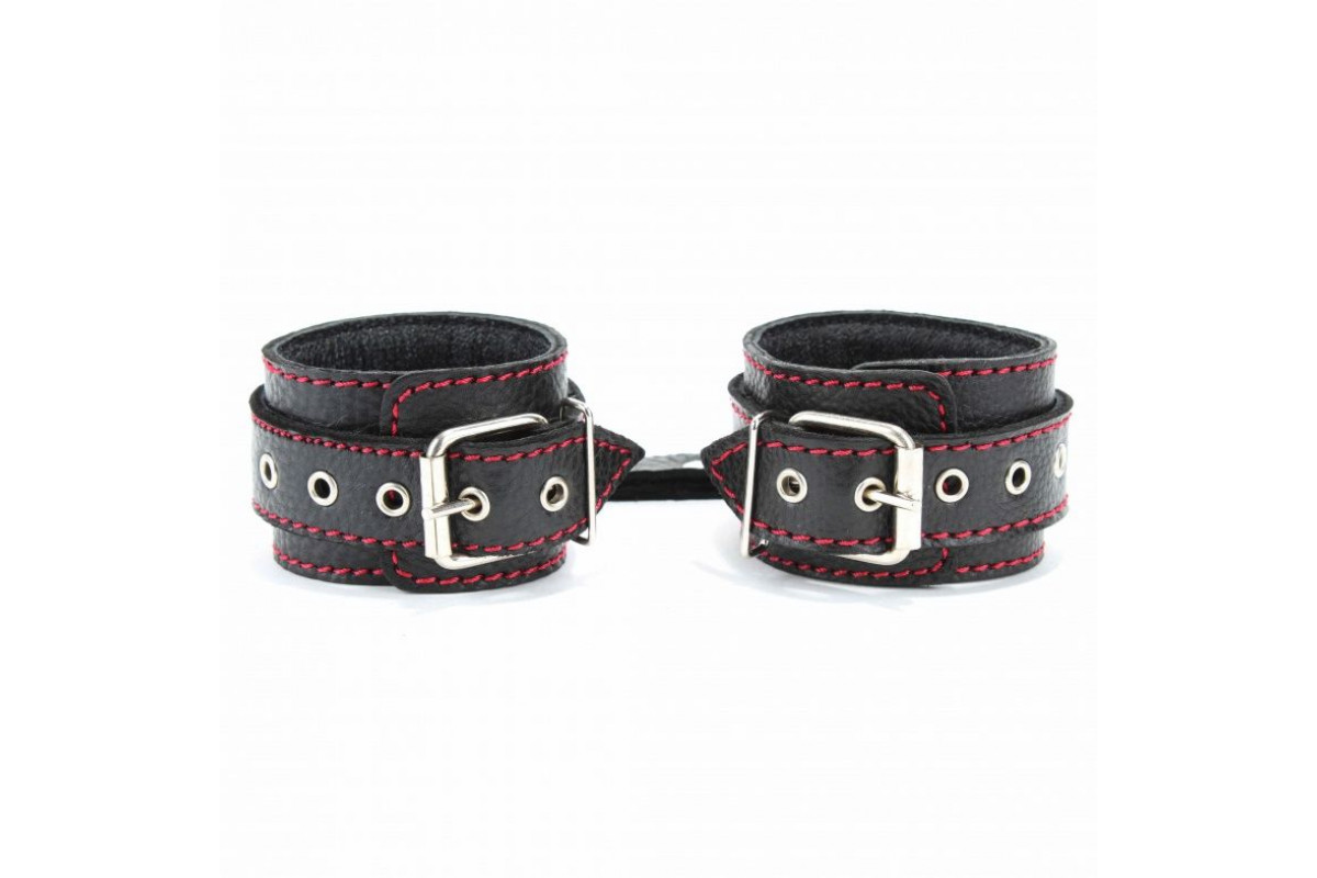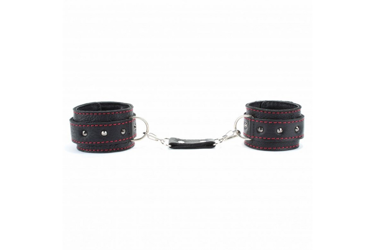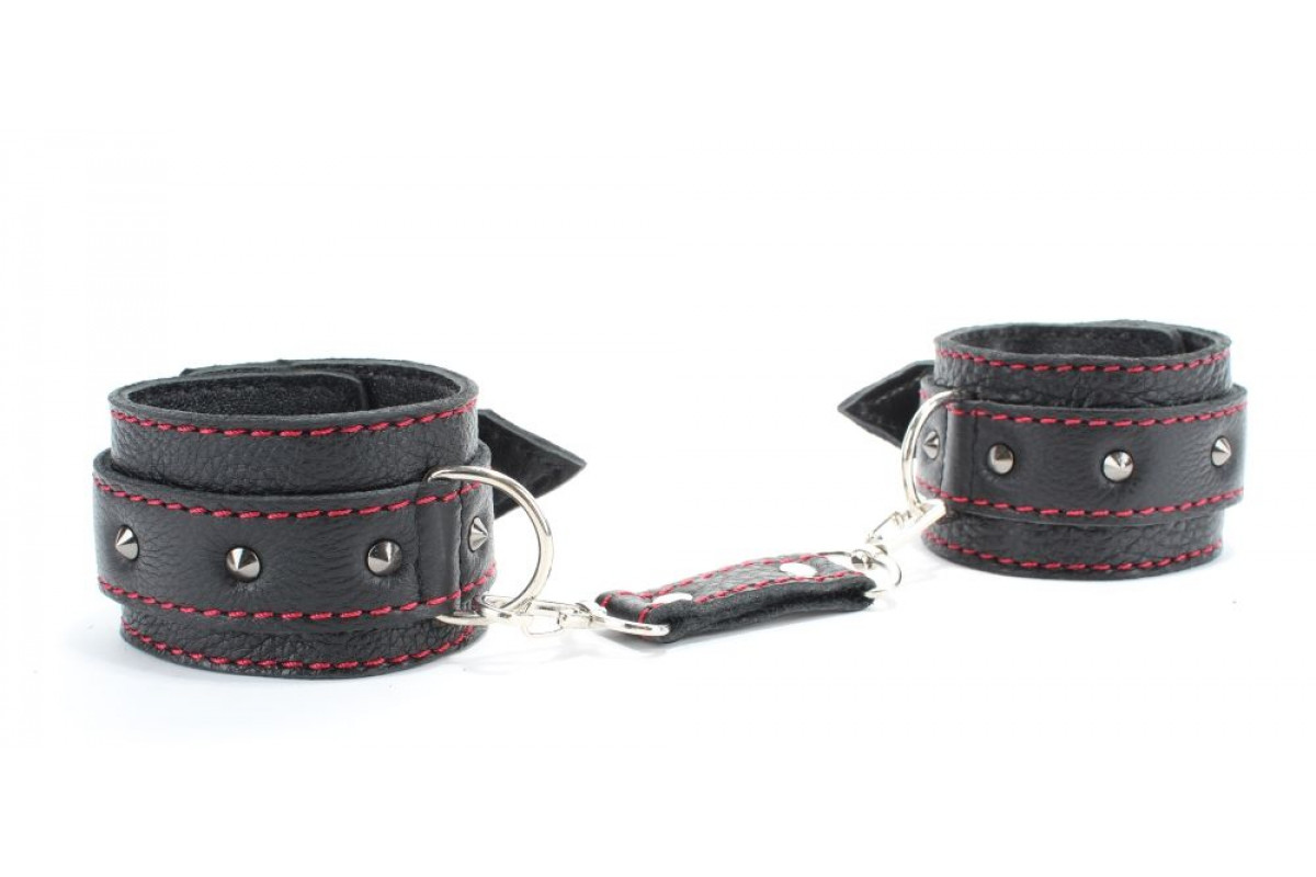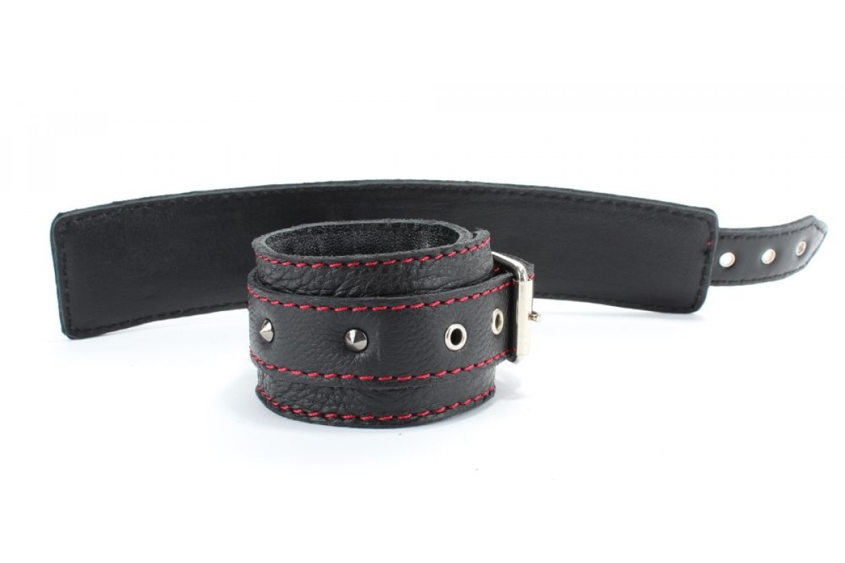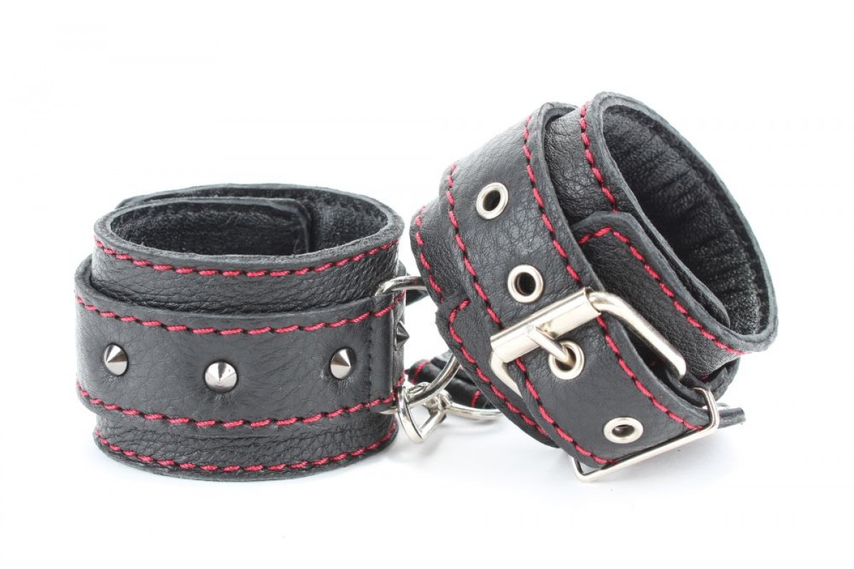 Черные оковы с шипами и контрастной строчкой — стильное и возбуждающее аксессуар для взрослых