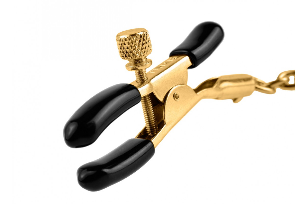 Чёрные с золотом зажимы на соски Gold Chain Nipple Clamps