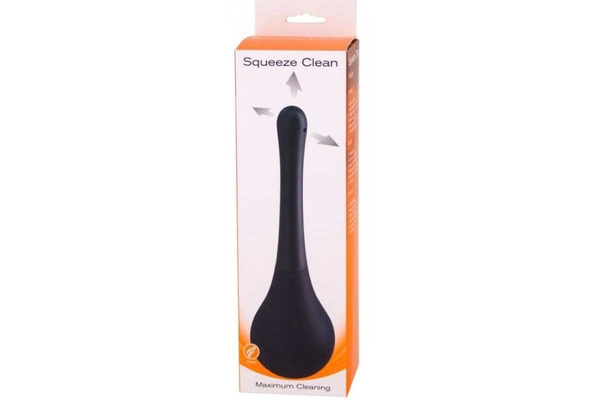 Черный анальный душ SQUEEZE CLEAN с закругленным наконечником