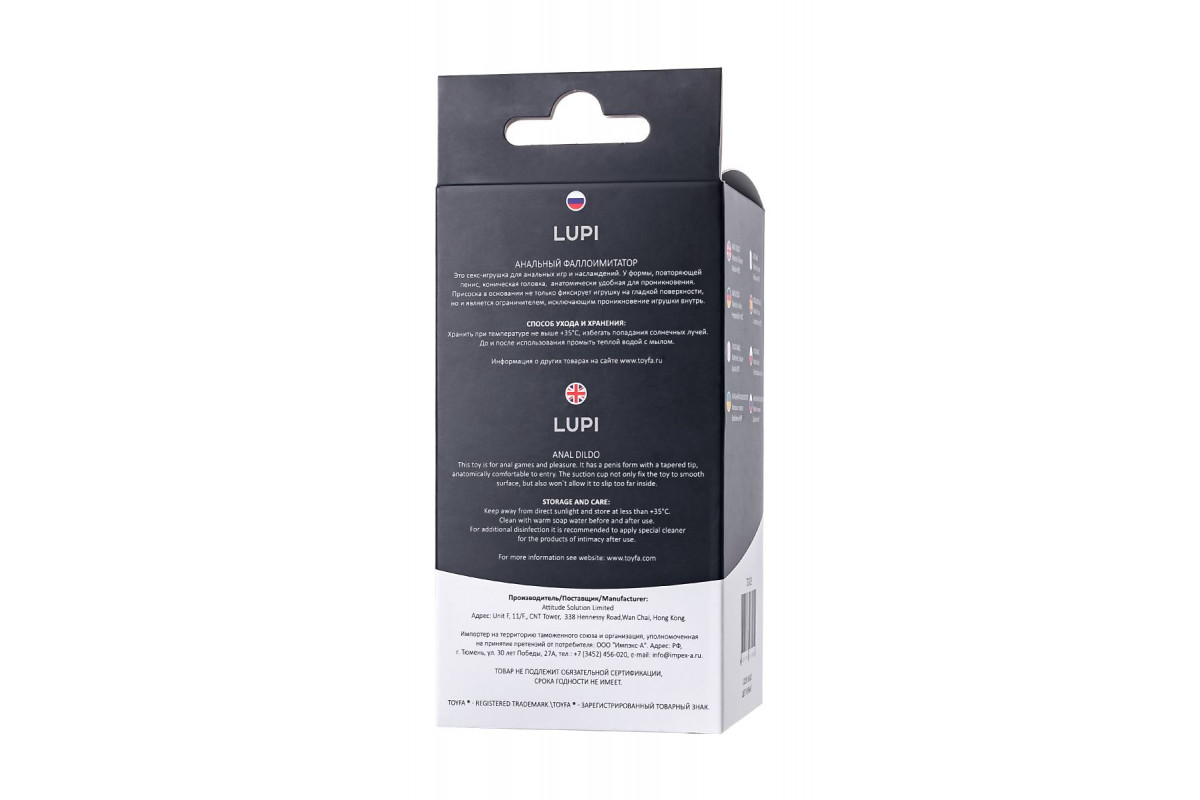 Черный анальный фаллоимитатор Lupi - 13,5 см.