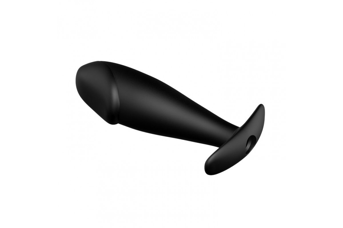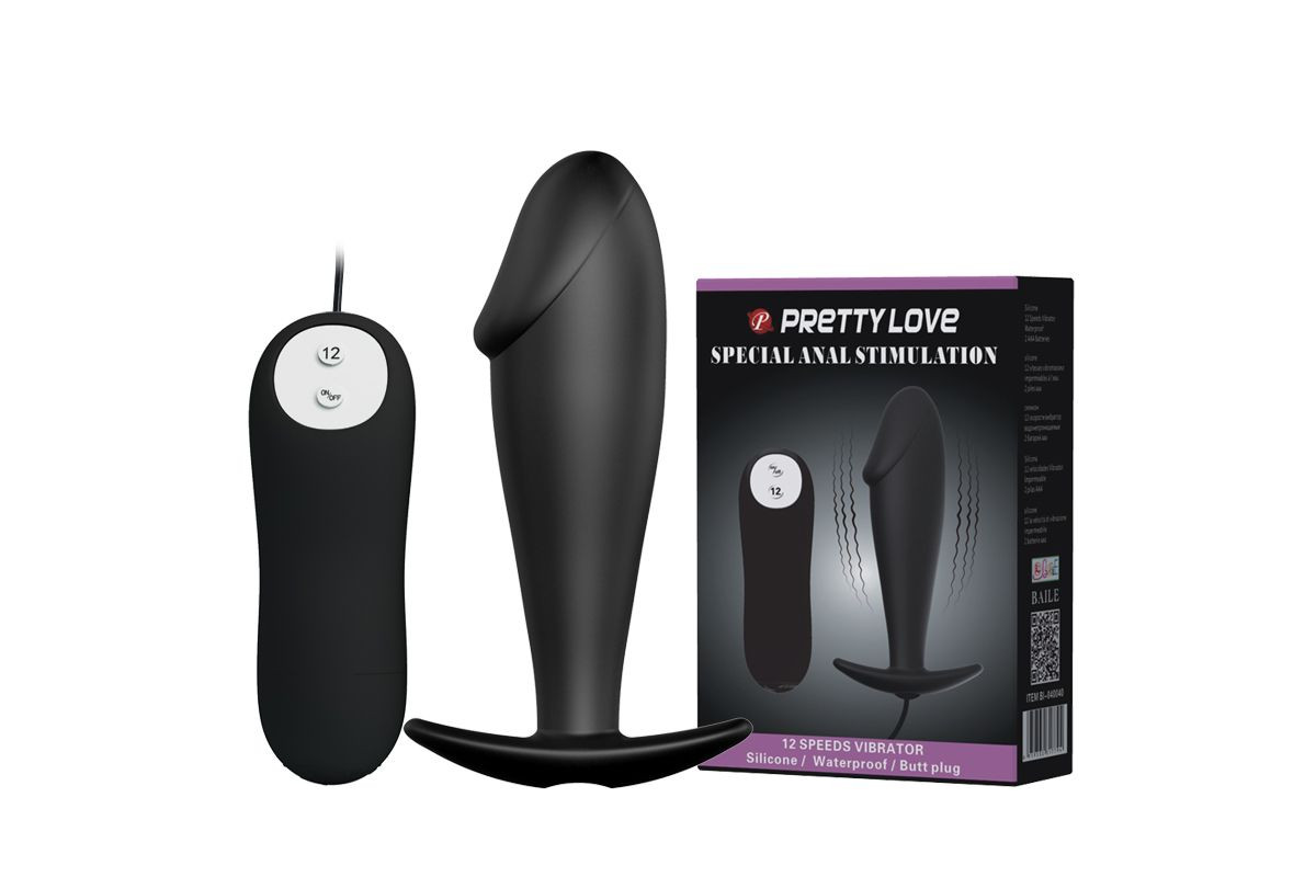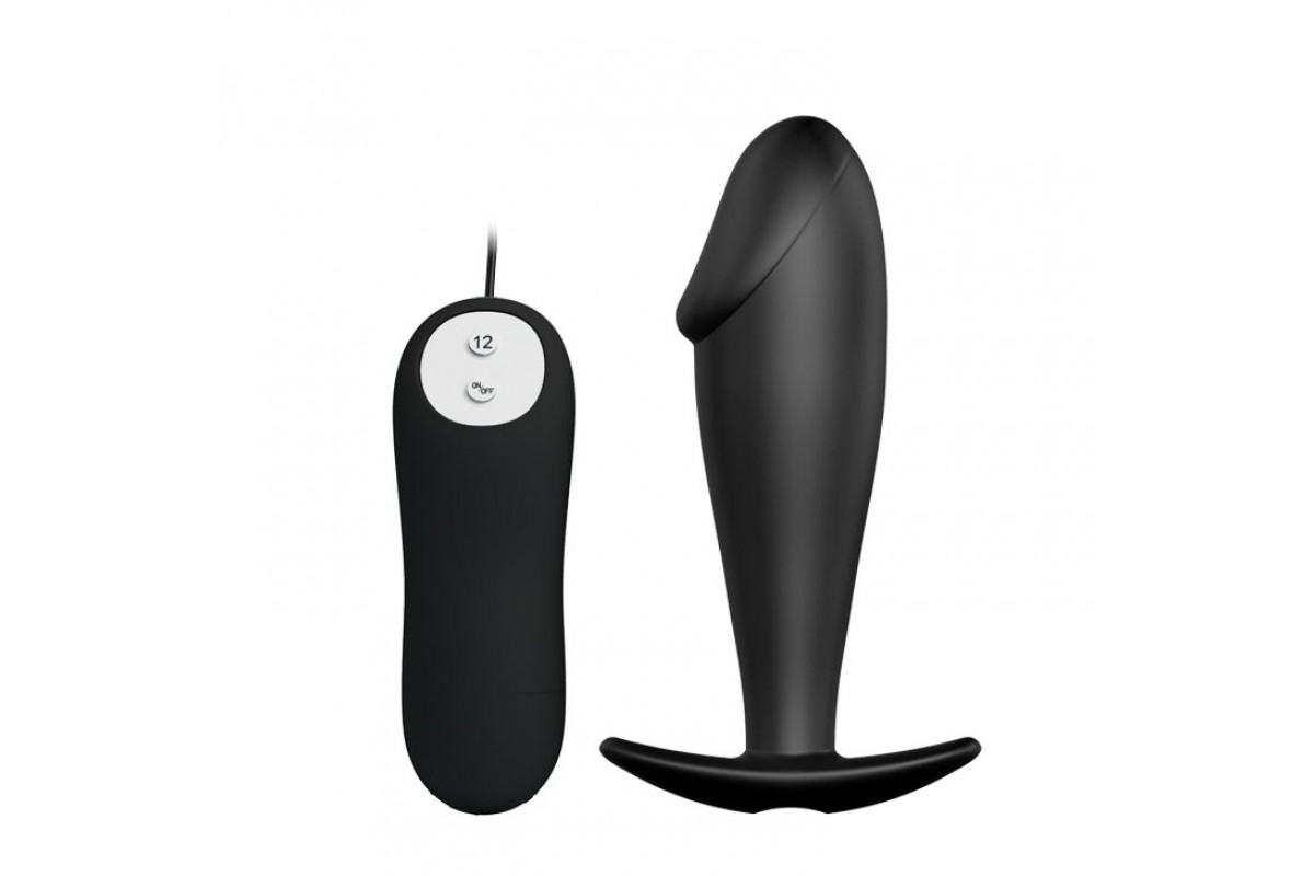 Эта черная анальная пробка фаллической формы изготовлена из бархатистого на ощупь силикона. Имеет широкое ограничительное основание для безопасного использования: оно не даст протолкнуть пробку в попку в порыве чувств. Пробочка не имеет швов, гладкая и приятная на ощупь, прекрасно скользит внутри при использовании лубриканта. Имеет 12 режимов вибрации, управляемых при помощи проводного пульта.