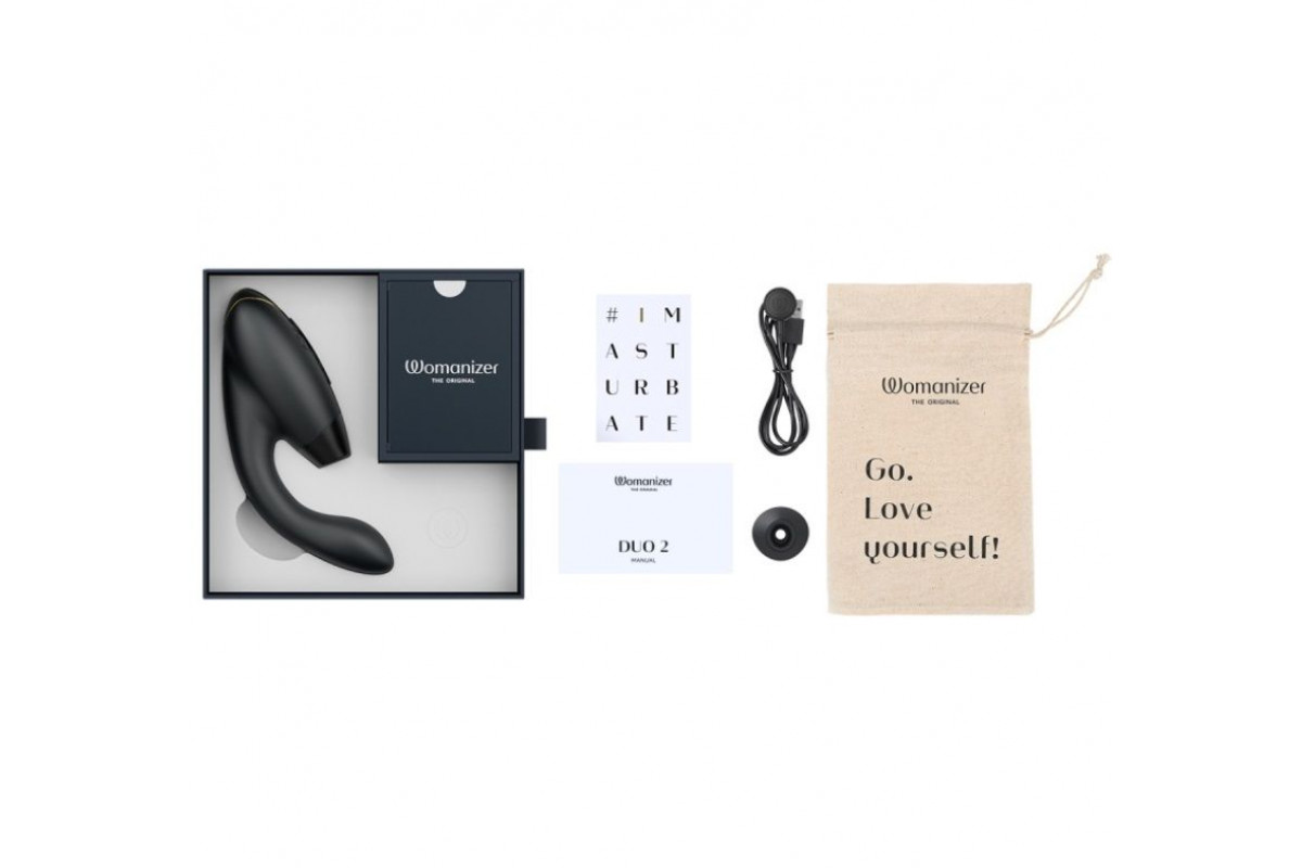 Womanizer Duo 2 — это инновационный бесконтактный клиторальный стимулятор, созданный для женщин, которые ценят качество, эргономику и максимальное удовольствие. Черный дизайн подчеркивает элегантность и стиль, а уникальная технология гарантирует незабываемые ощущения.