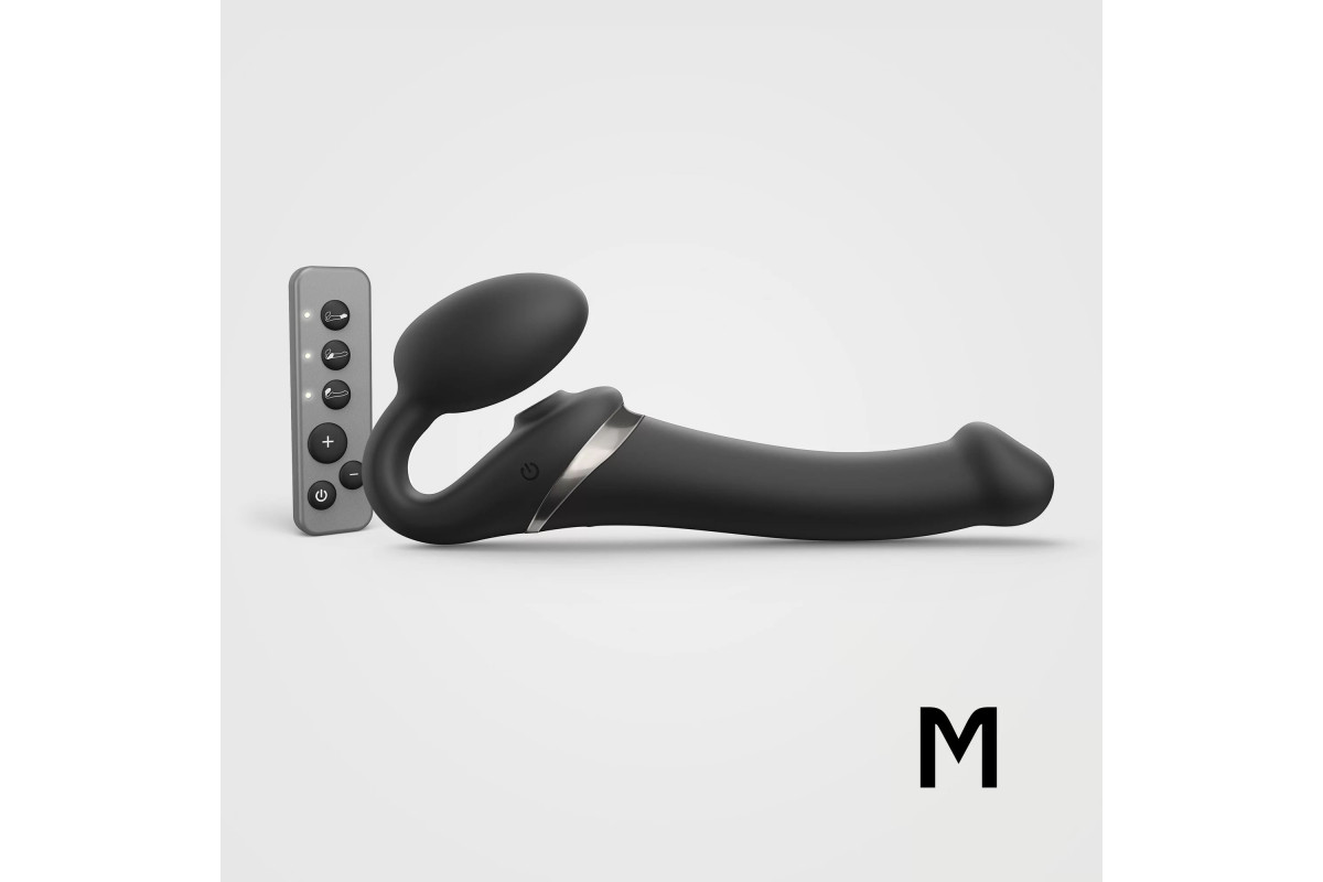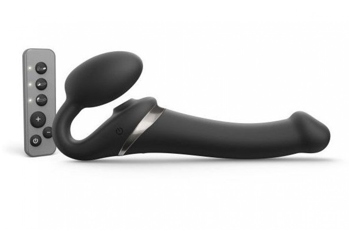 Черный безремневой страпон Multi Orgasm Size M с клиторальной стимуляцией