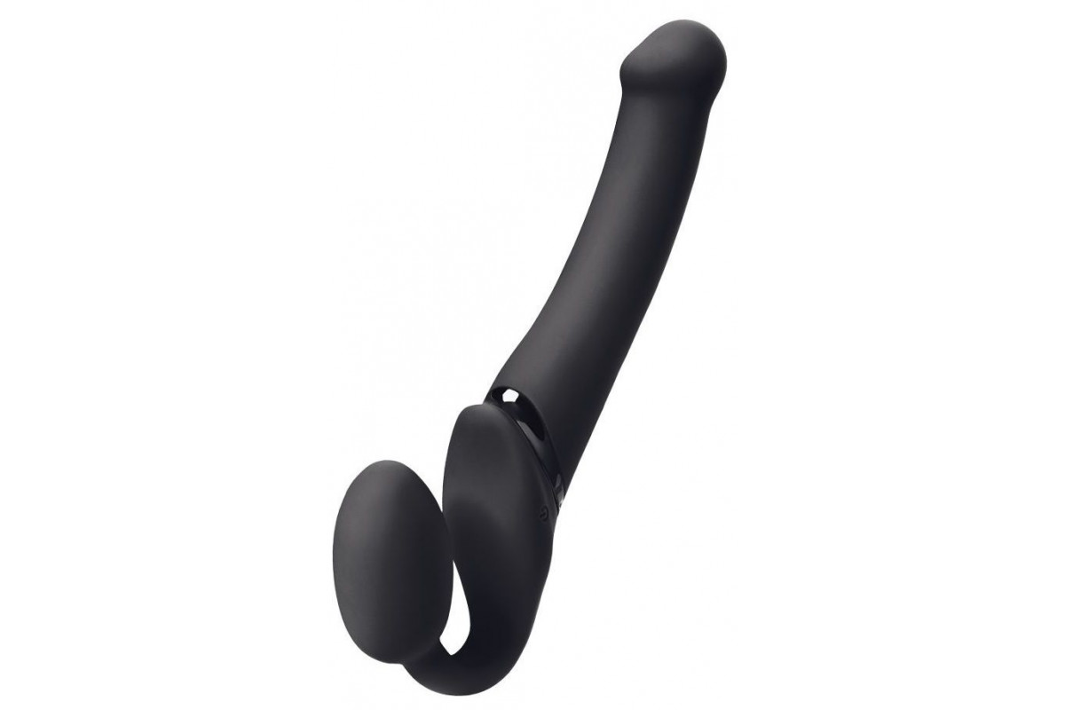 Черный безремневой вибрострапон Silicone Bendable Strap-On - size M
