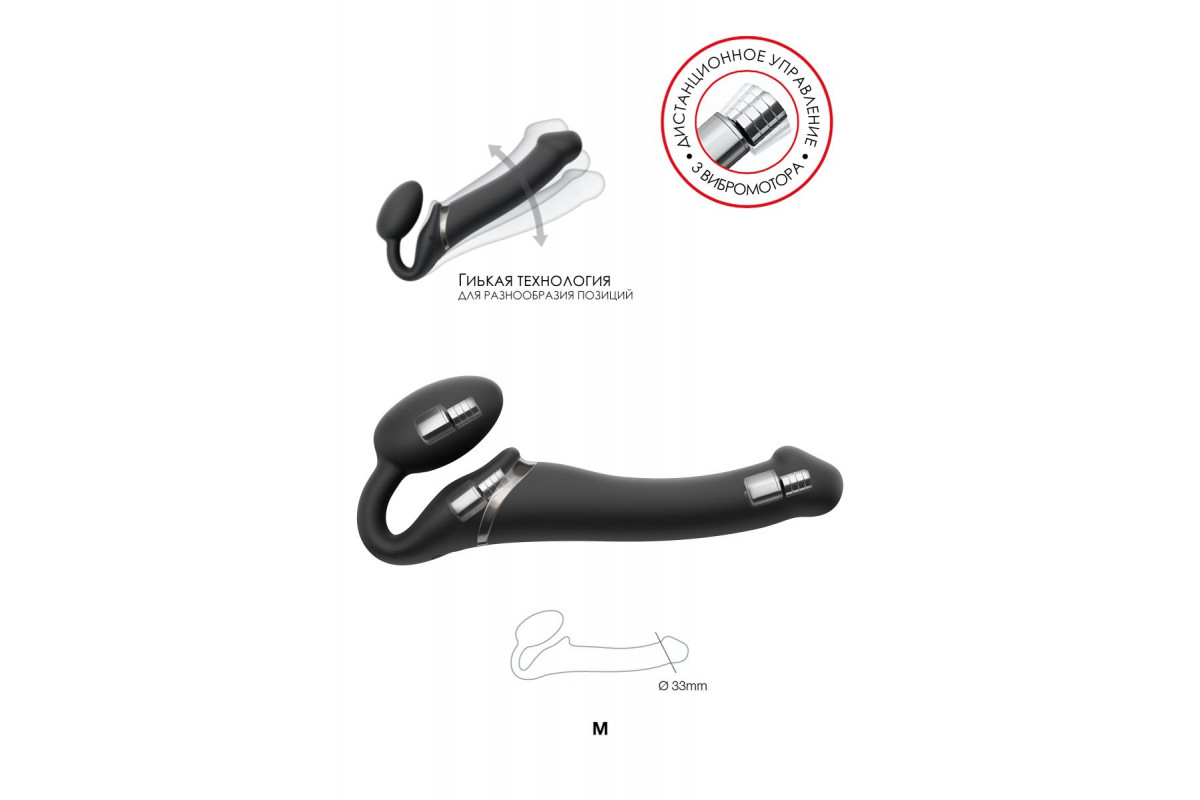 Какие точные размеры у товара Черный безремневой вибрострапон Silicone Bendable Strap-On - size M и кому он подойдёт?