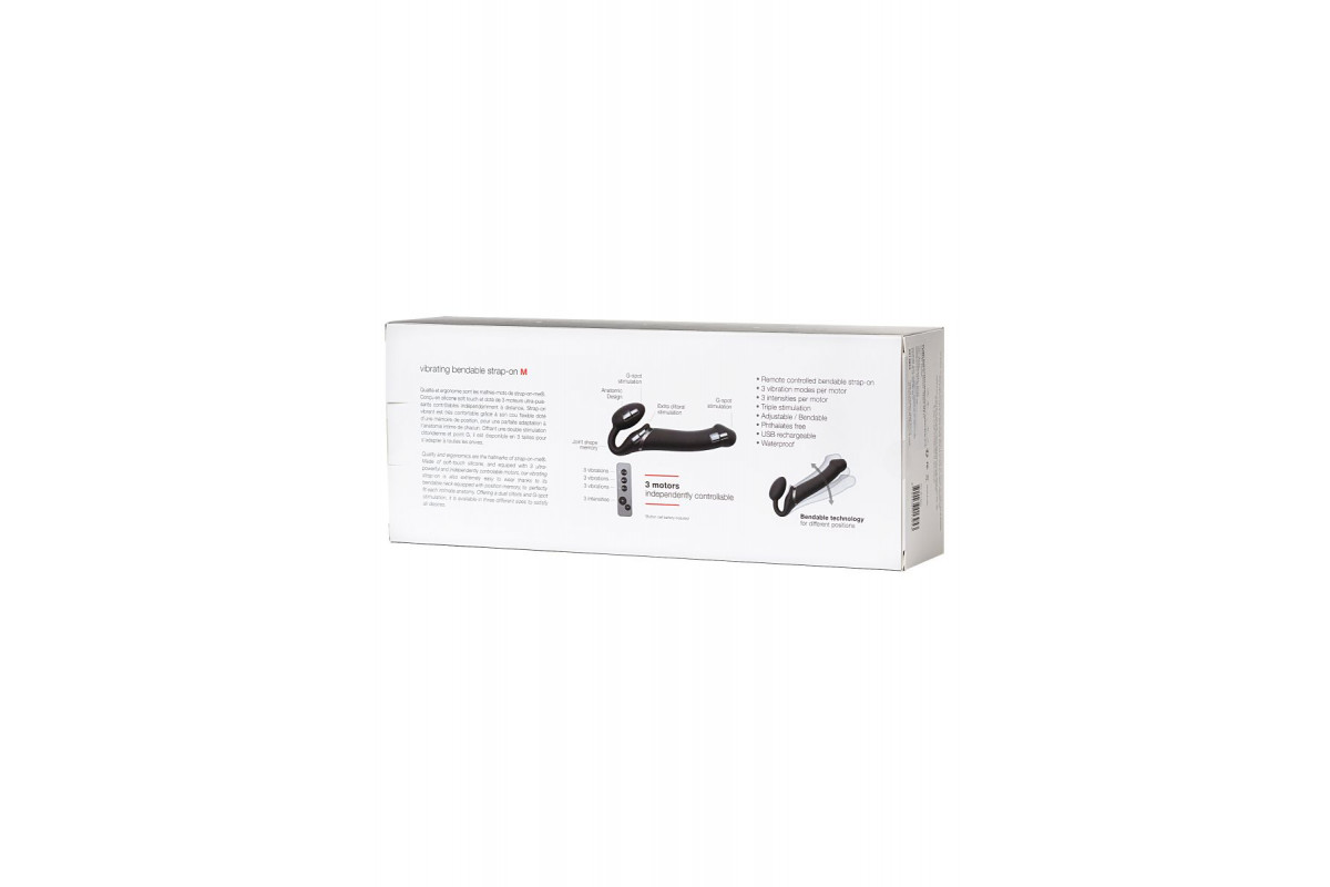 Регулируемая технология. Три независимых мотора с уровнем шума до 50–60 дБ. Емкий аккумулятор на 45 минут непрерывного использования. Пульт ДУ с радиусом работы до 10 метров. 3-слойный материал: гибкий внутренний стержень, жесткий силиконовый слой и дополнительный верхний слой из гипоаллергенного, бархатистого на ощупь силикона Soft-touch. Ручное литье без швов и класс водонепроницаемости IPX7. Мешочек для хранения в комплекте. Strap-on-me — новый уровень вашей близости. Рабочая длина - 15,6 см.