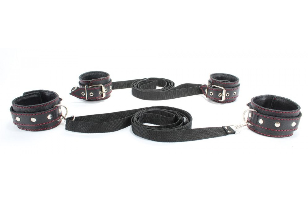 Черный бондажный набор с красной строчкой — создайте атмосферу страсти и интриги
