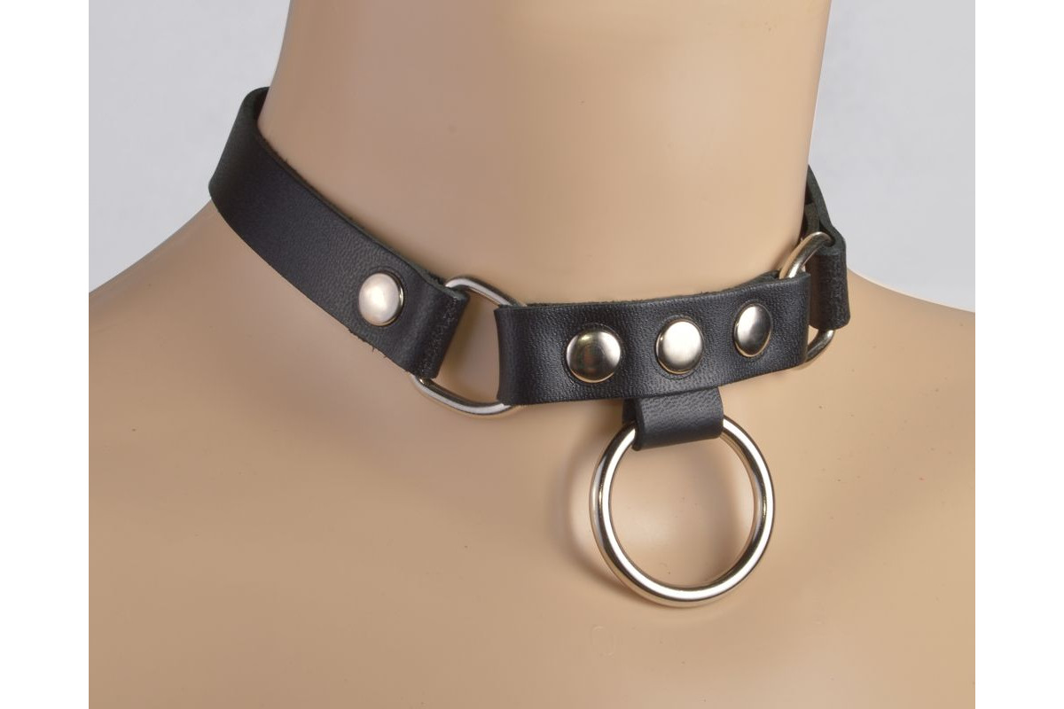 Черный чокер с клепками и кольцом — стильный аксессуар для взрослых