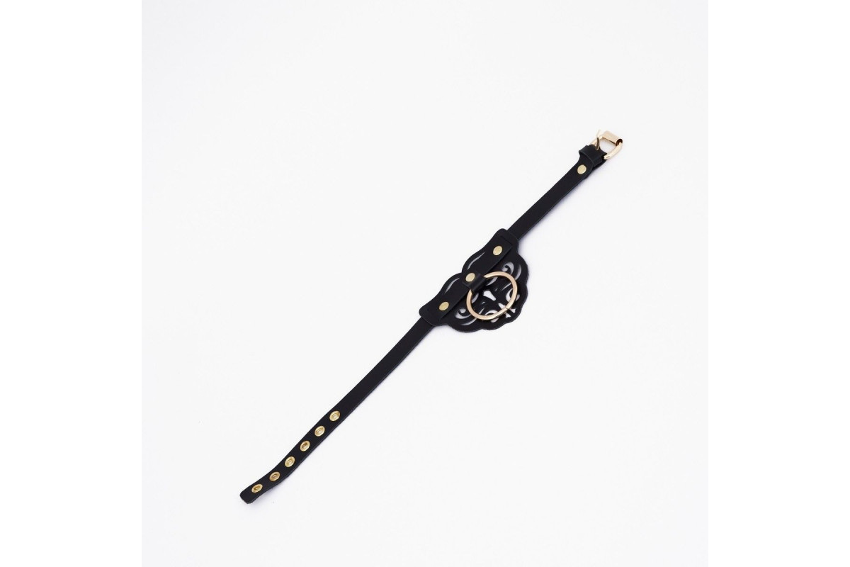 Черный чокер украшен глажеными клепками, которые создают эффект легкой агрессивности и одновременно изящества. Золотистая фурнитура добавляет изделию благородства и роскоши, делая его по-настоящему заметным и привлекательным элементом образа. Такой дизайн подходит как для вечерних соблазнительных образов, так и для более авангардных стилевых решений, позволяя экспериментировать и находить новые границы сексуальности. Уникальное сочетание классики и современности делает этот чокер универсальным аксессуаром, который легко вписывается в любой гардероб для особых случаев.