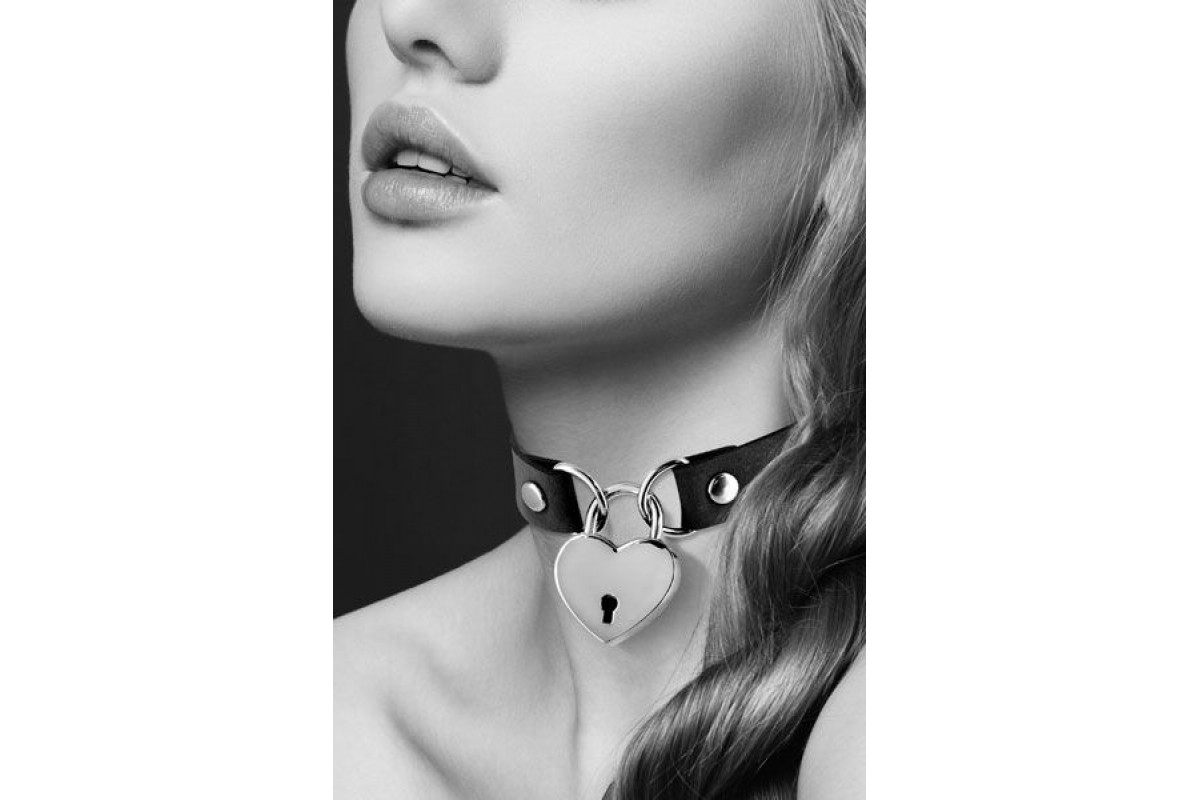 Черный чокер с замком в форме сердца — стильное и эротичное украшение для взрослых