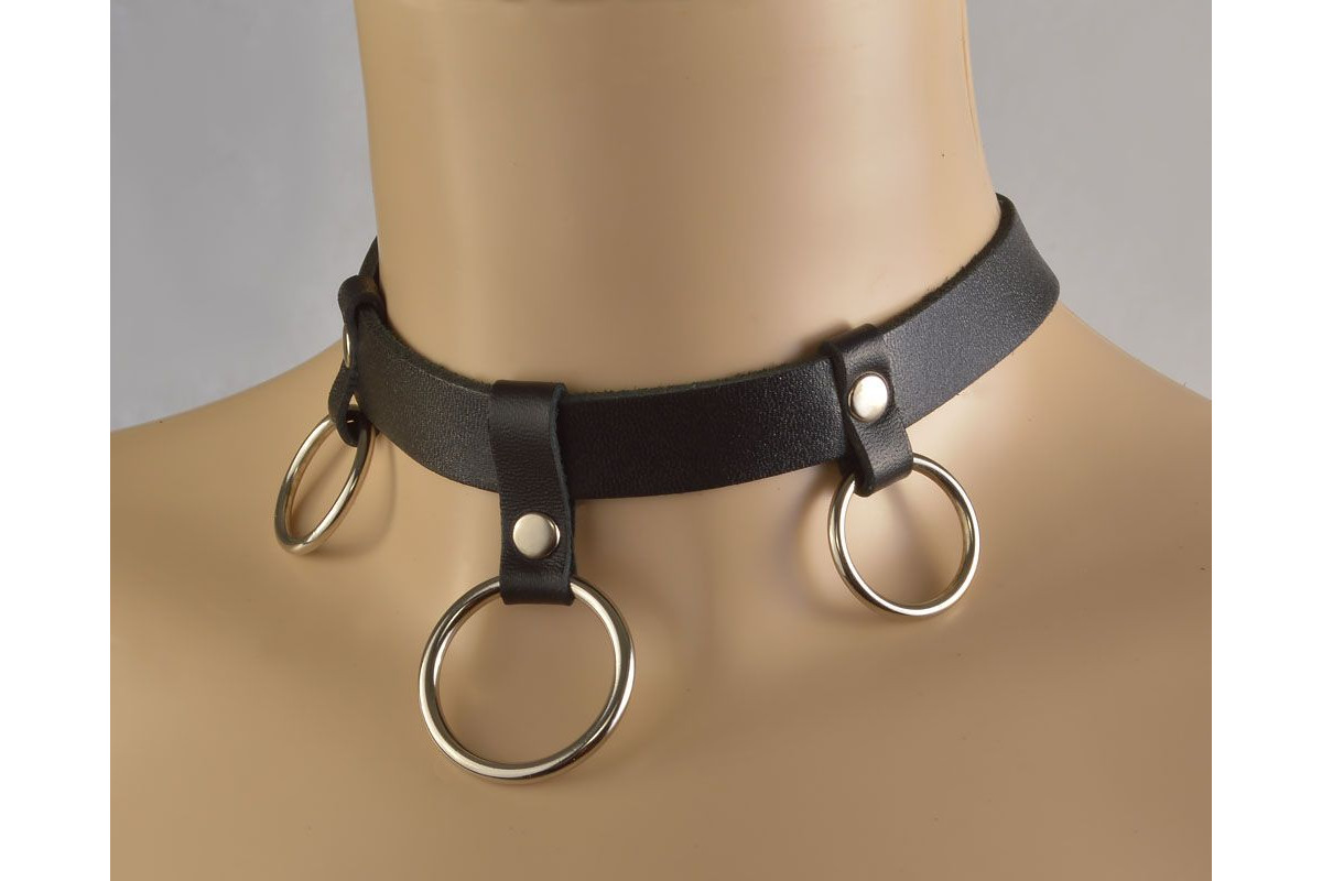 Черный чокер Соло с 3 кольцами – стильный аксессуар для взрослых