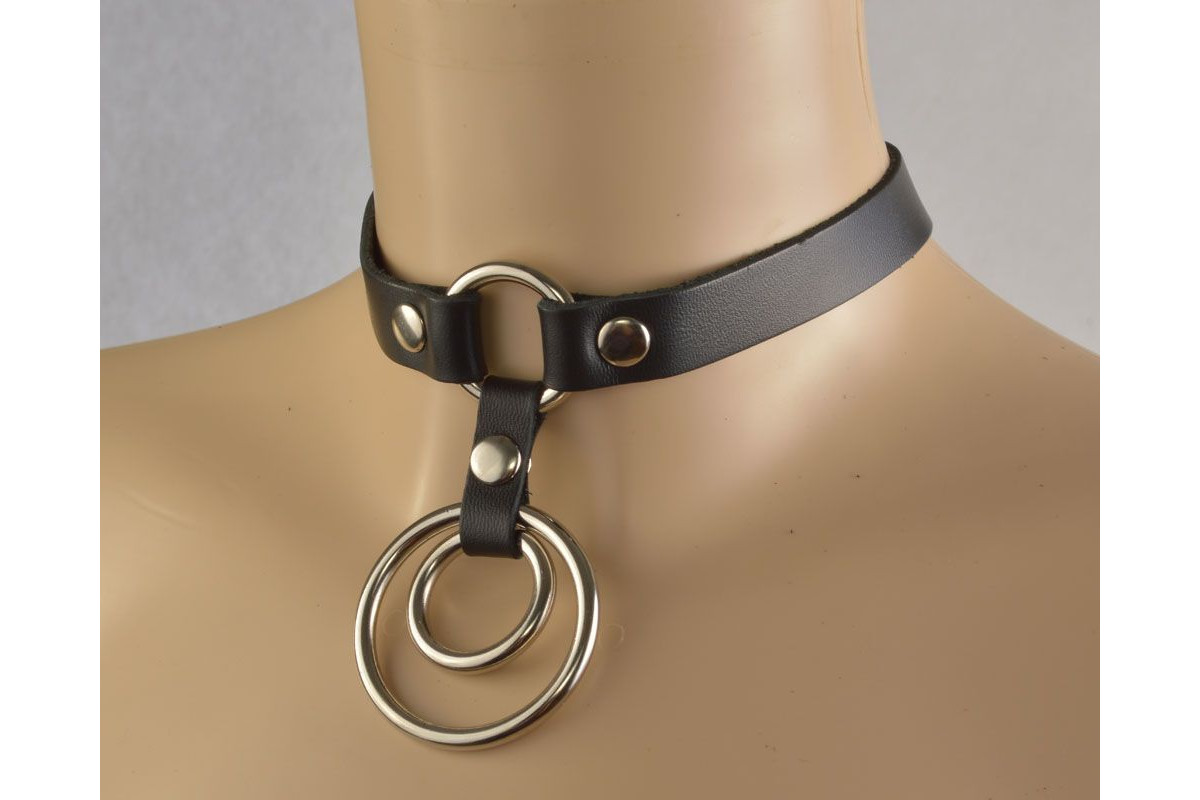Черный чокер Соло с двумя кольцами — стильный аксессуар для взрослых