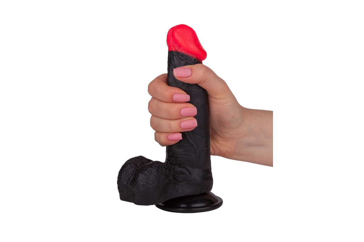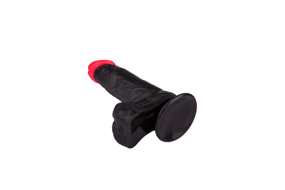 Чёрный фаллоимитатор с красной головкой - 18,5 см.
