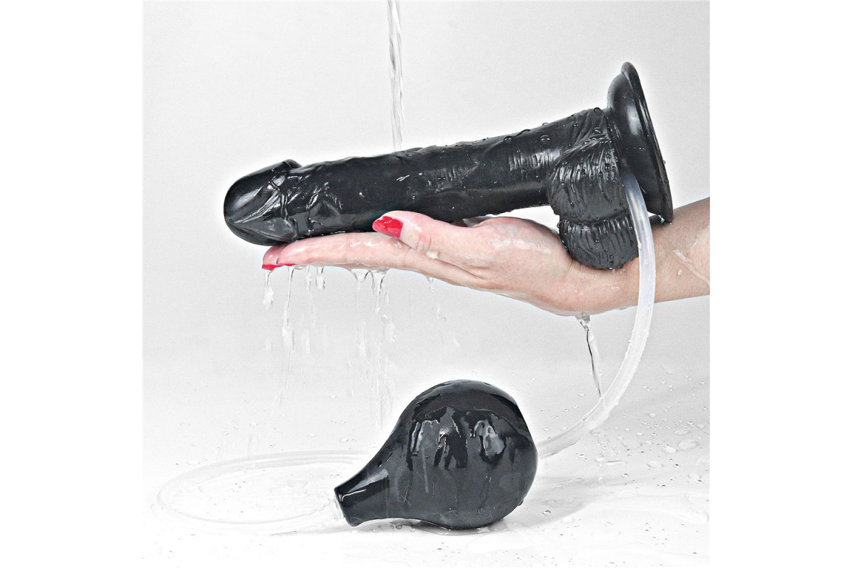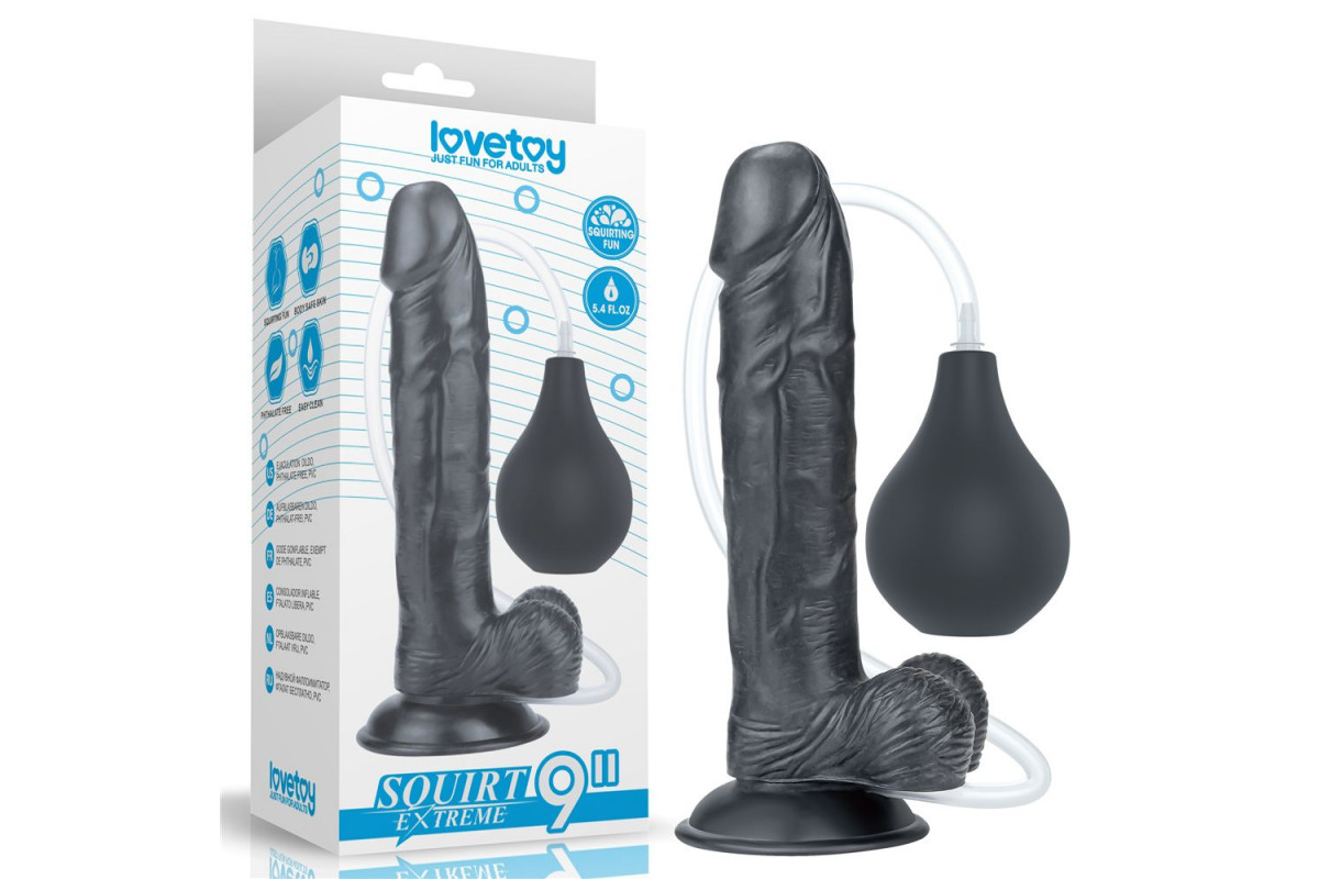 Черный фаллоимитатор Squirt Extreme 9 с имитацией эякуляции — уникальный опыт для взрослых