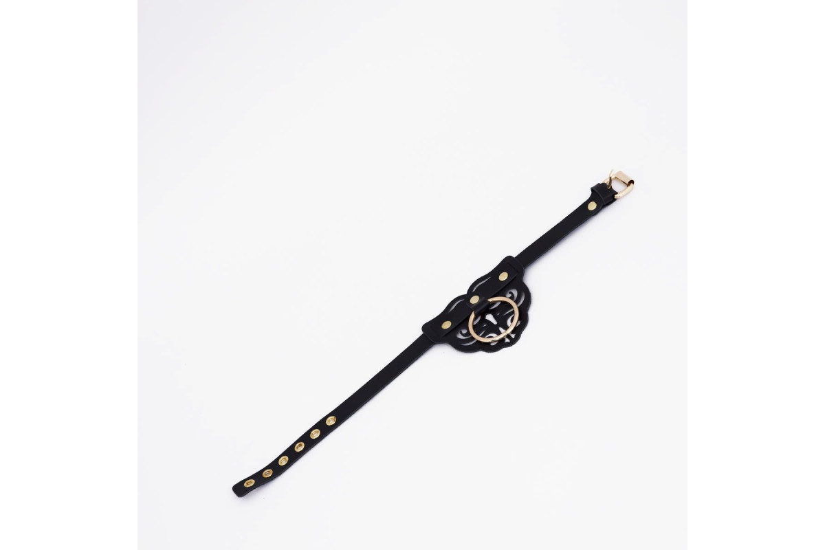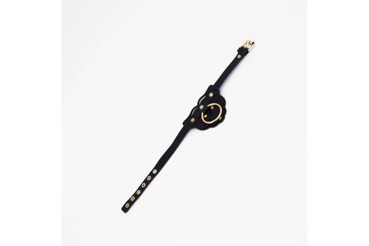 Добавьте в свою коллекцию этот черный фигурный кожаный ошейник с золотистой фурнитурой и подчеркните свою уникальность уже сегодня!