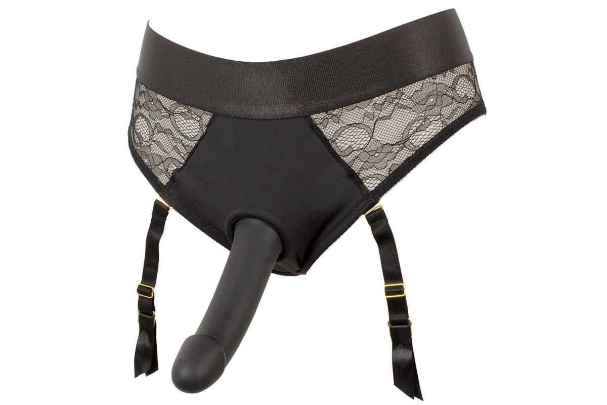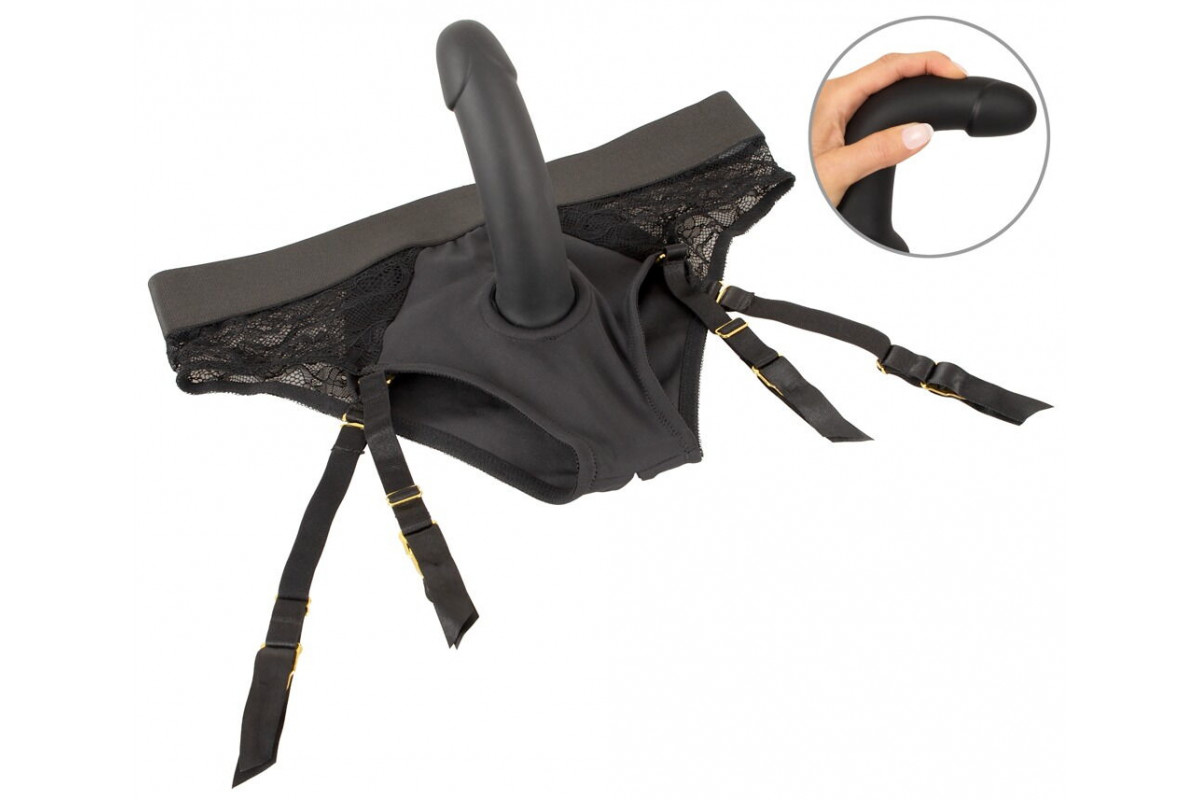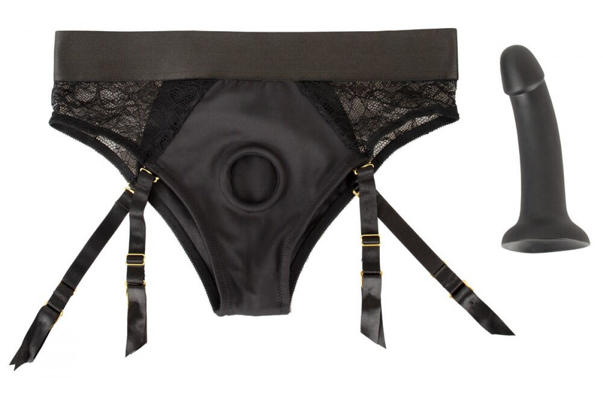 Стильный комплект с трусиками и дилдо. Помимо чувственного вида и комфортного ощущения трусиков, этот комплект также радует своей продуманной функциональностью: Дилдо быстро и легко вставляется в трусики для приятного проникновения. И оно остается прочно и надежно на месте даже во время самых страстных движений. Для большего (и нового) удовольствия для двоих!