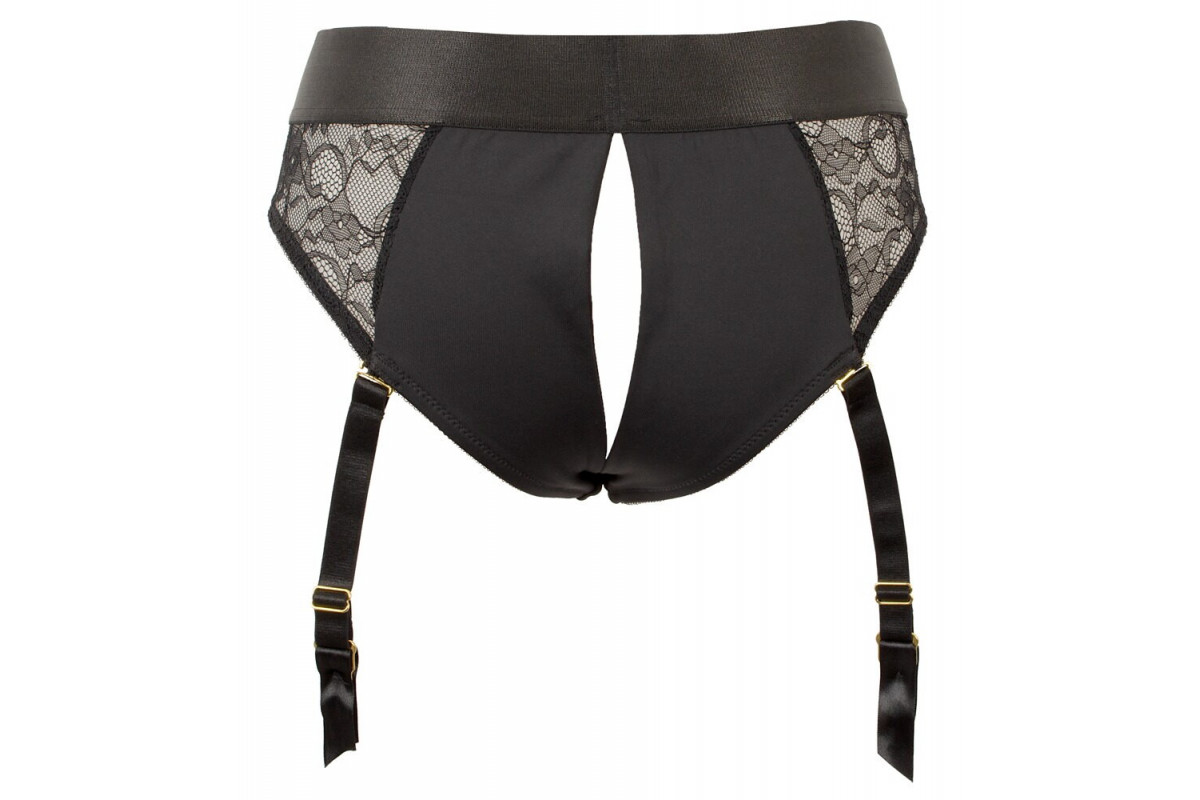 Черные трусики из эластичного материала, смеси микрофибры и кружева, обеспечивающие исключительный комфорт. Двойной слой спереди с вставкой и незаметным эластичным кольцом для легкого введения дилдо с присоской. Любое другое дилдо/вибратор с присоской (максимальный диаметр 4 см) также может быть вставлено. Завлекающий разрез над ягодицами. Подтяжки регулируются и полностью съемные.
