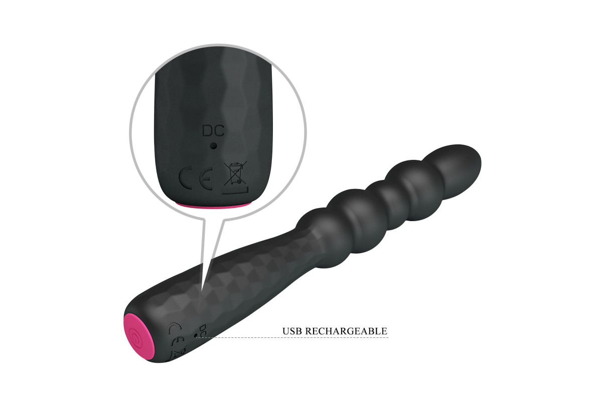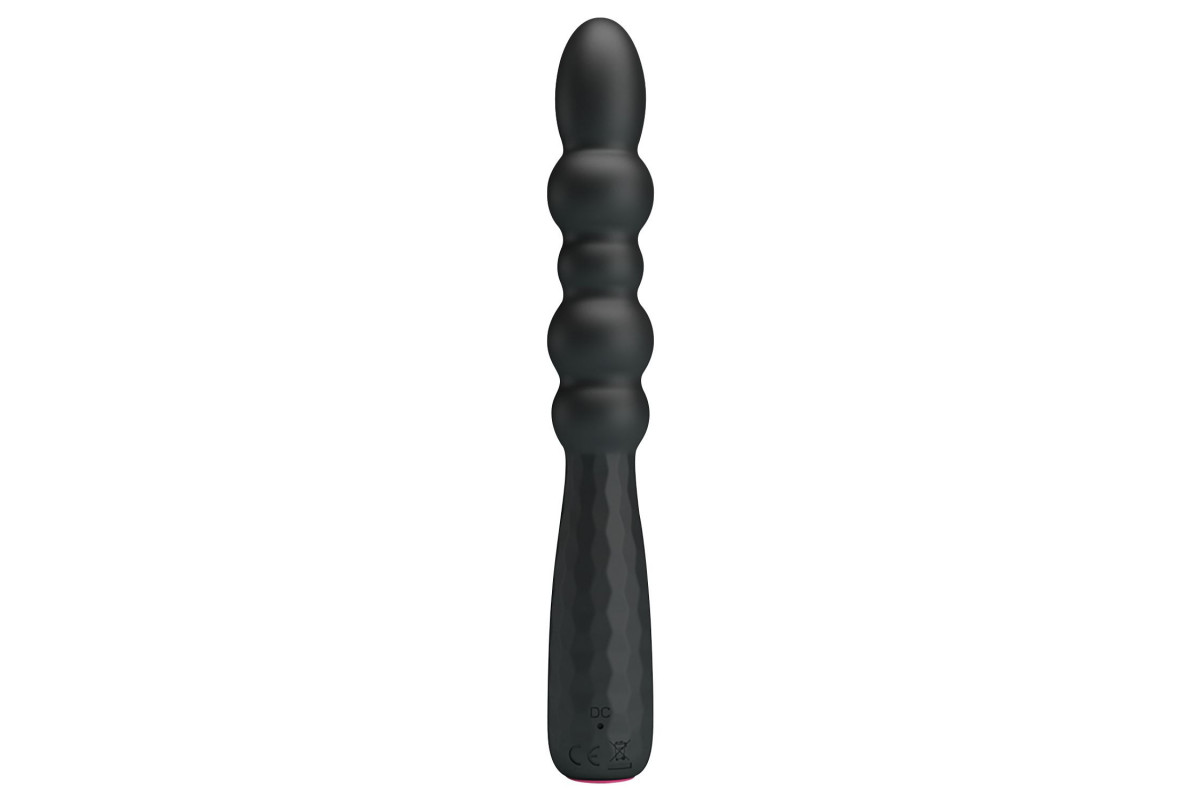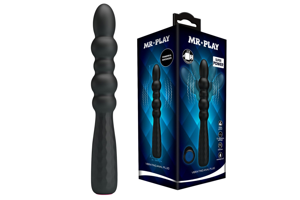 Черный гибкий анальный вибратор. Выполнен из силикона и имеет 12 режимов вибрации.